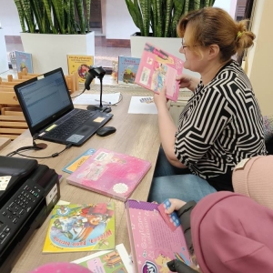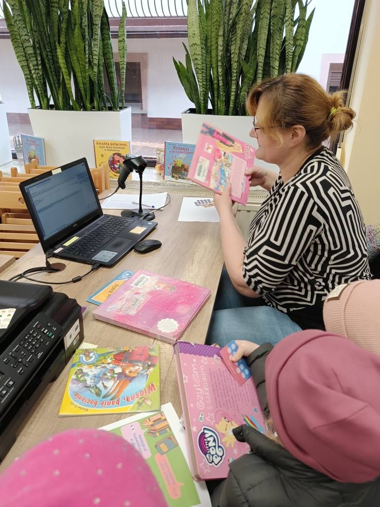 Na zakończenie wizyty wszystkie dzieci wypożyczyły swoje pierwsze książki do wspólnego czytania z rodzicami.