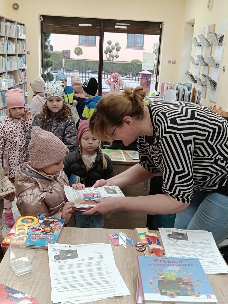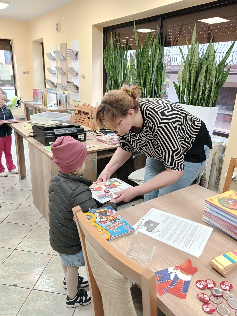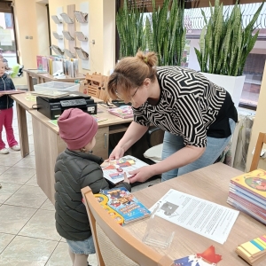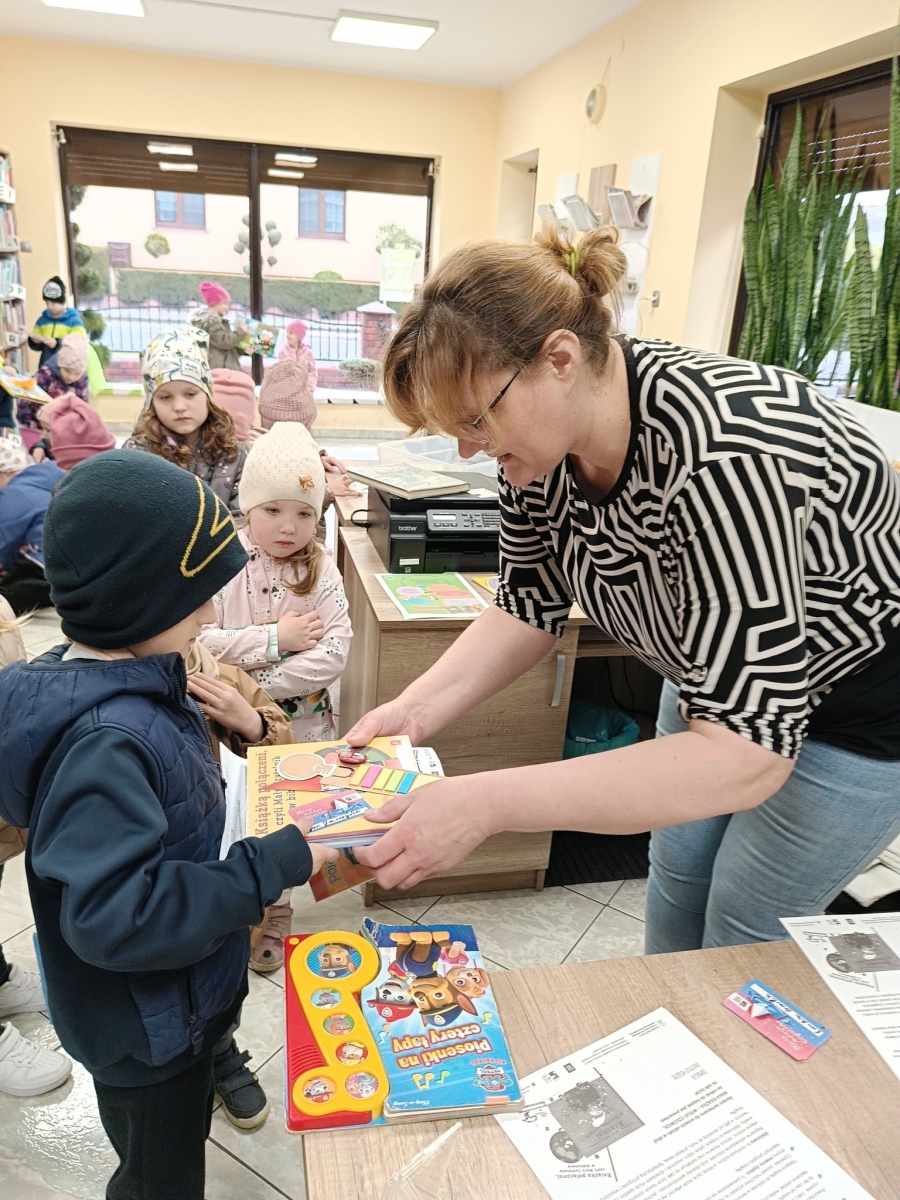 Najmłodsi wzięli udział w ogólnopolskim projekcie MAŁA KSIĄŻKA – WIELKI CZŁOWIEK. Akcja ta jest skierowana do dzieci w wieku przedszkolnym i ich rodziców, by zachęcić do regularnego odwiedzania biblioteki i codziennego, wspólnego czytania. Odpowiednio dobrane książki rozwijają umysł i emocje, kształtują kompetencje językowe, rozbudzają wyobraźnię i zakorzeniają je w kulturze. Wspólna lektura jest wielką przyjemnością oraz okazją do budowania bliskości i silnych, trwałych więzi rodzinnych.