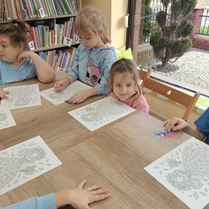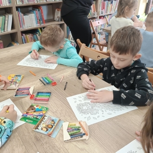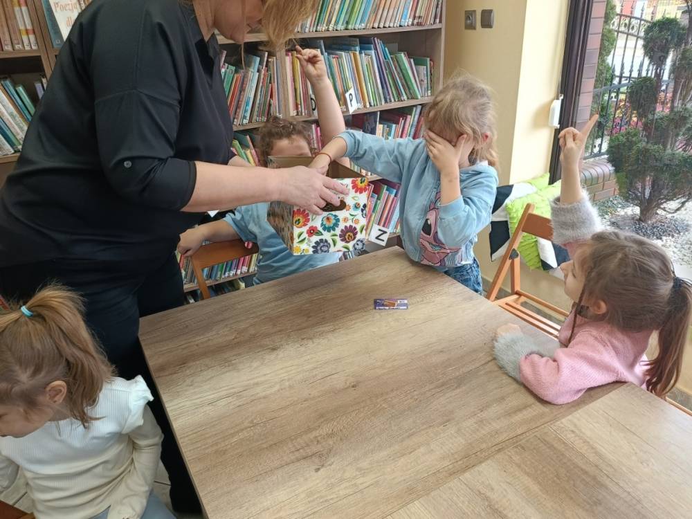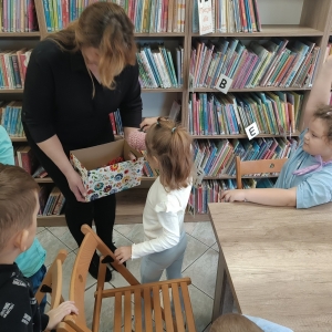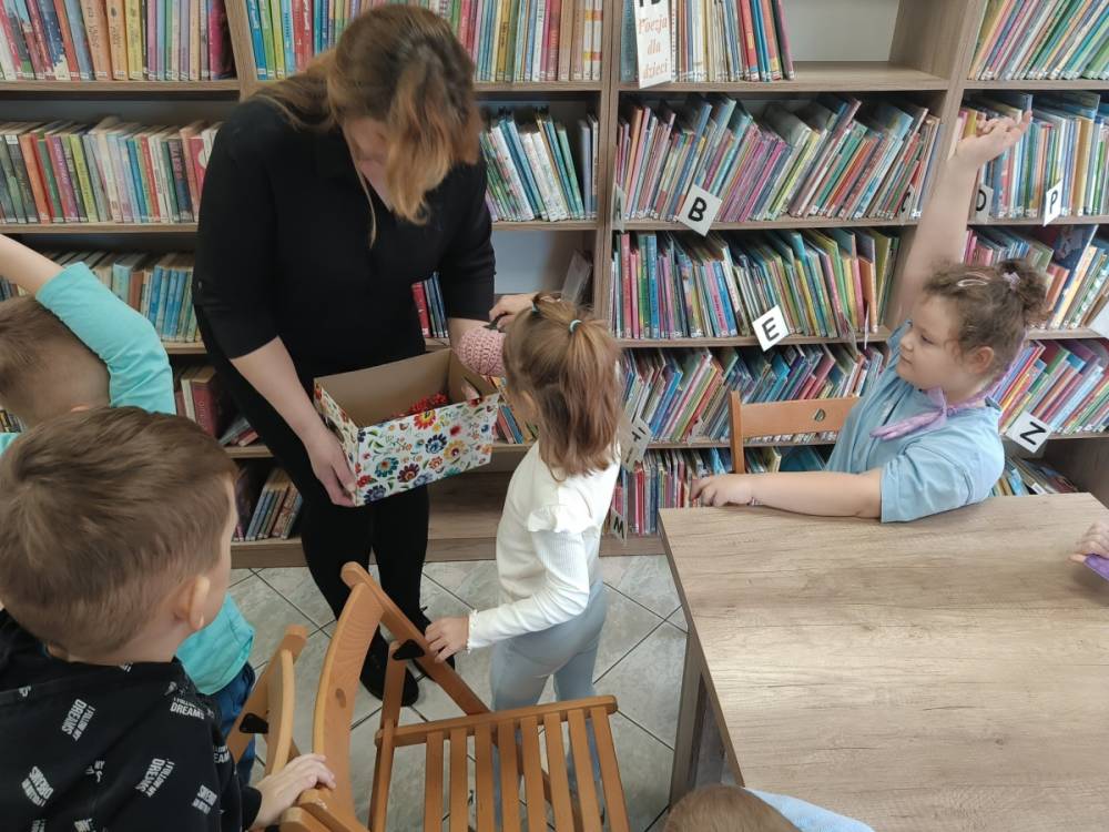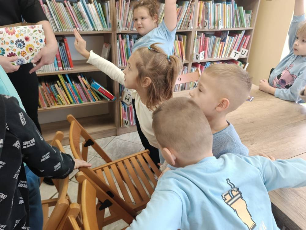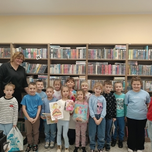 Na zakończenie młodzi czytelnicy wypożyczyli książki do czytania wspólnie z rodzicami. Bardzo dziękujemy za miłe odwiedziny i zapraszamy do częstego odwiedzania biblioteki.