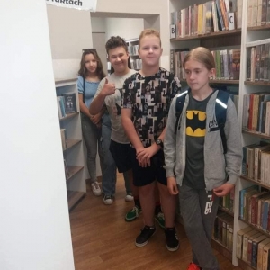 Biblioteka Publiczna Miasta i Gminy w Kobylinie. Młodzi ludzie zapoznali się budynkiem książnicy, rozkładem