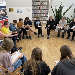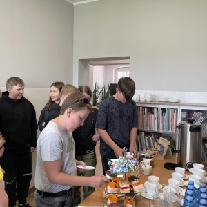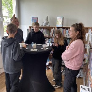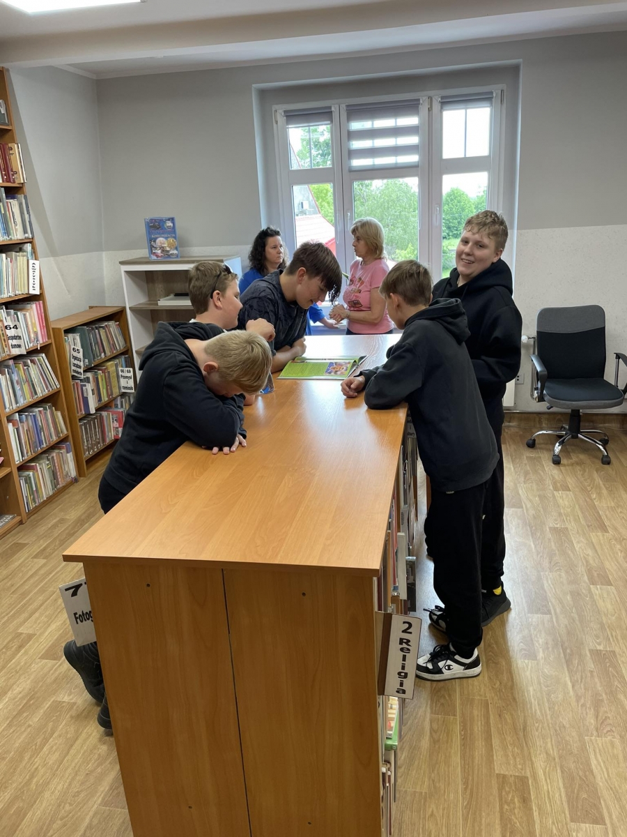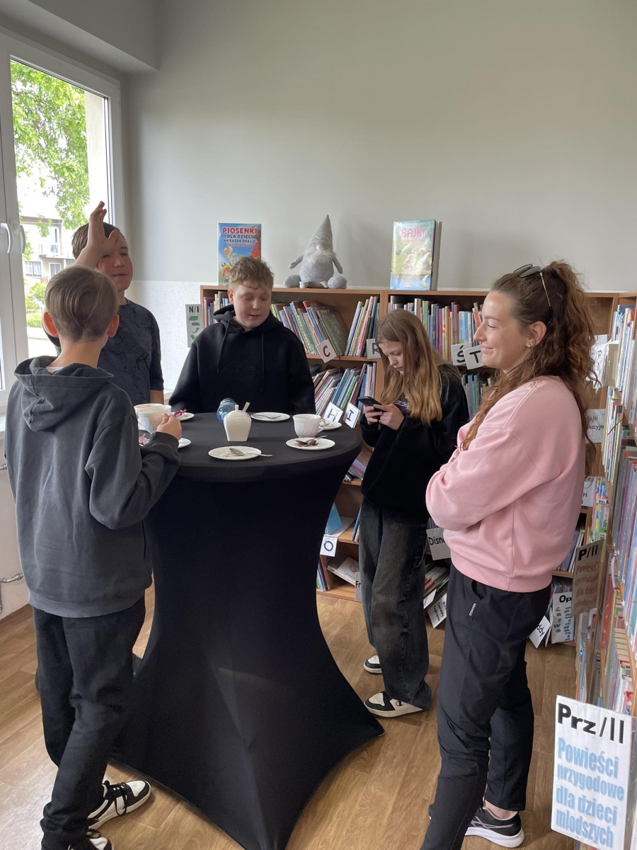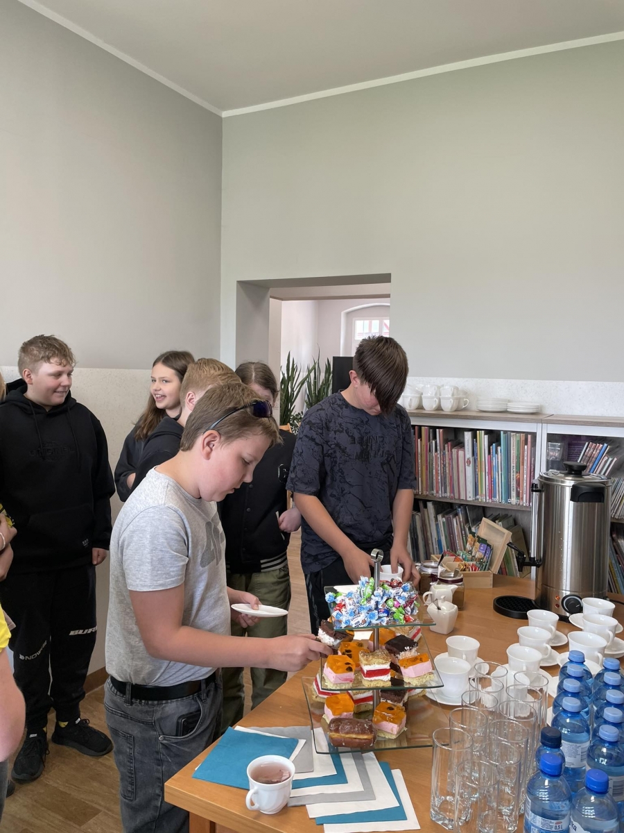 Po pracy umysłowej był czas na odpoczynek przy herbacie i słodkim poczęstunku. Uczniowie zwiedzili naszą bibliotekę, wyrażając aprobatę na kolejną wizytę, co bardzo nas ucieszyło.