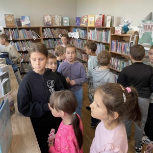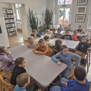 Pani Dyrektor naszej biblioteki opowiedziała o swoim zawodzie, o obowiązkach w pracy. Nie mogło zabraknąć zwiedzania książnicy.