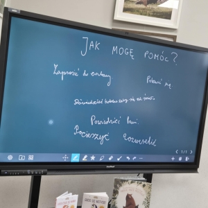 Słuchając przykładowych sytuacji problemowych w klasie, uczniowie dzielili się rozwiązaniami wspierającymi siebie nawzajem.
