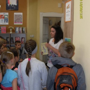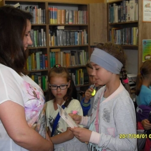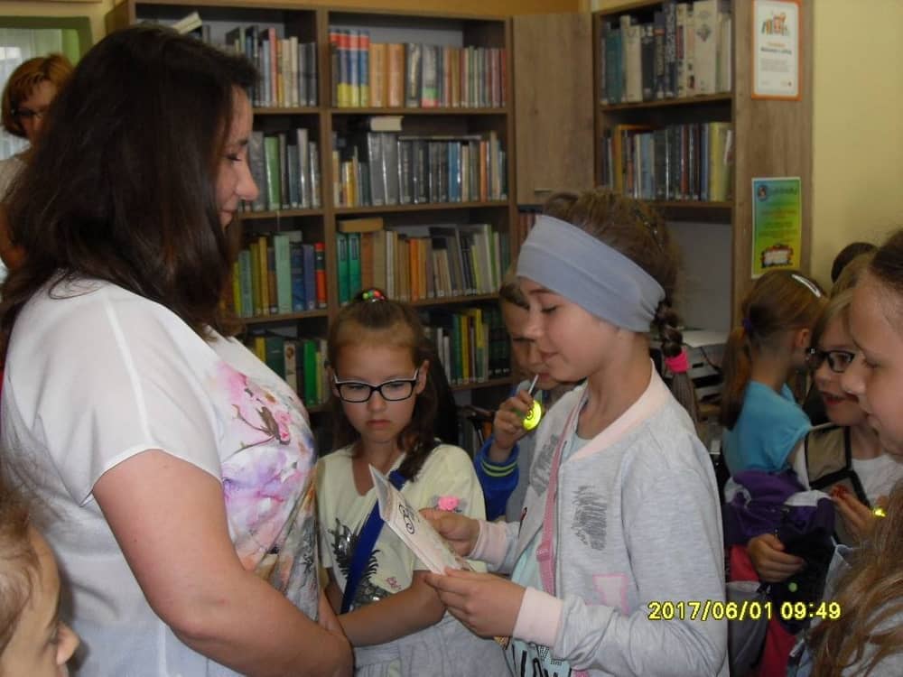 W Dniu Dziecka (1 czerwca) naszą bibliotekę odwiedzili uczniowie Szkoły Podstawowej z Zalesia Małego. Dzieci dowiedziały się jak zbudowana jest książka, co to jest katalog biblioteczny i karta katalogowa książki, jak działa wypożyczalnia oraz w jaki sposób można zostać użytkownikiem biblioteki. Miłą niespodzianką okazał się mini quiz, który bibliotekarki przygotowały dla gości z Zalesia Małego. Uczestnicy mogli wygrać słodkie upominki.