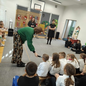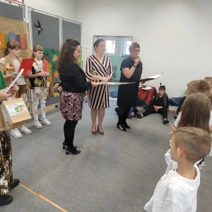 Uroczystość przygotowała i prowadziła Hanna Rejek (szkolna bibliotekarka, nauczycielka). Dzięki jej zaangażowaniu uczniowie, zaproszeni goście obejrzeli inscenizację o molach książkowych. Było sporo radości, ale także cennej wiedzy ukrytej w przedstawieniu. W rolę aktorów wcielili się uczniowie klasy piątej.