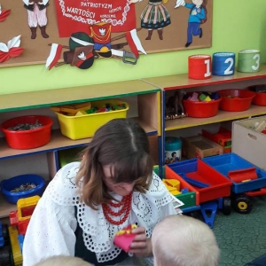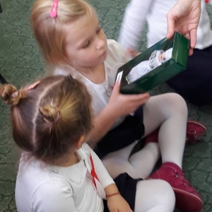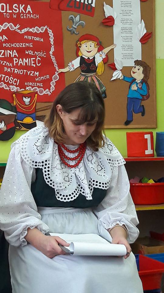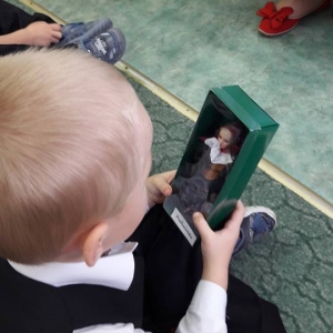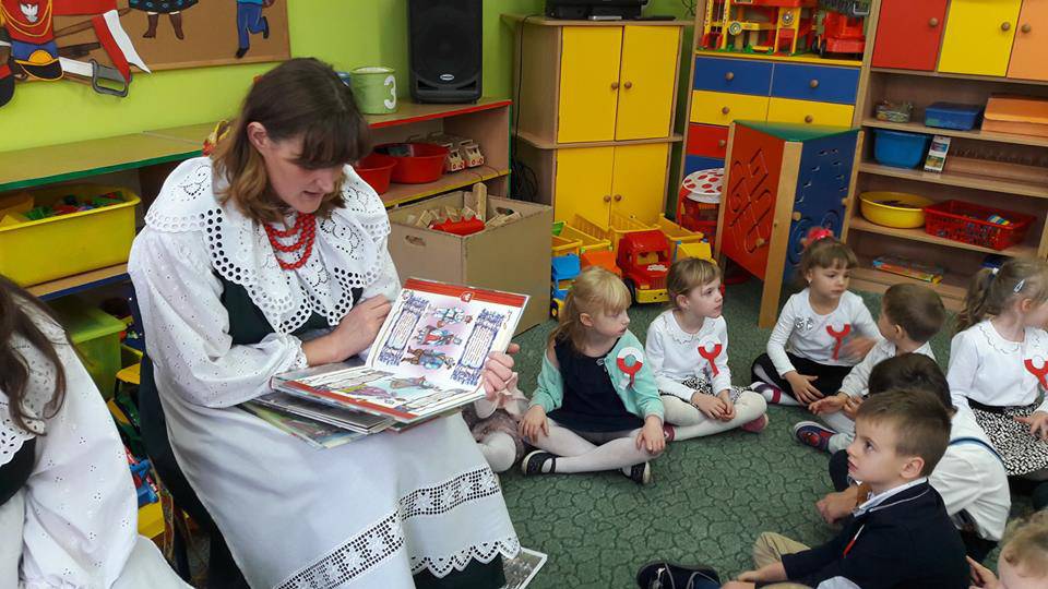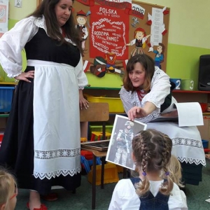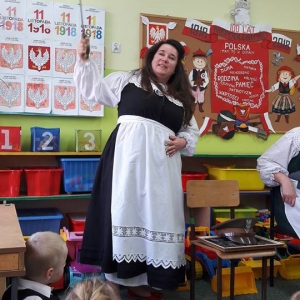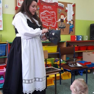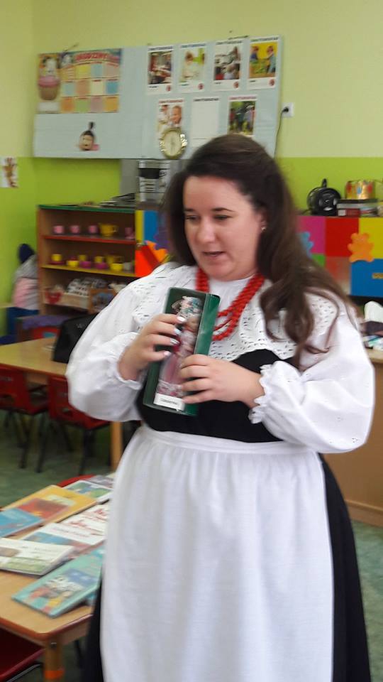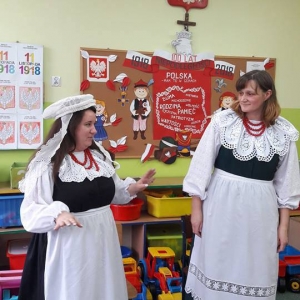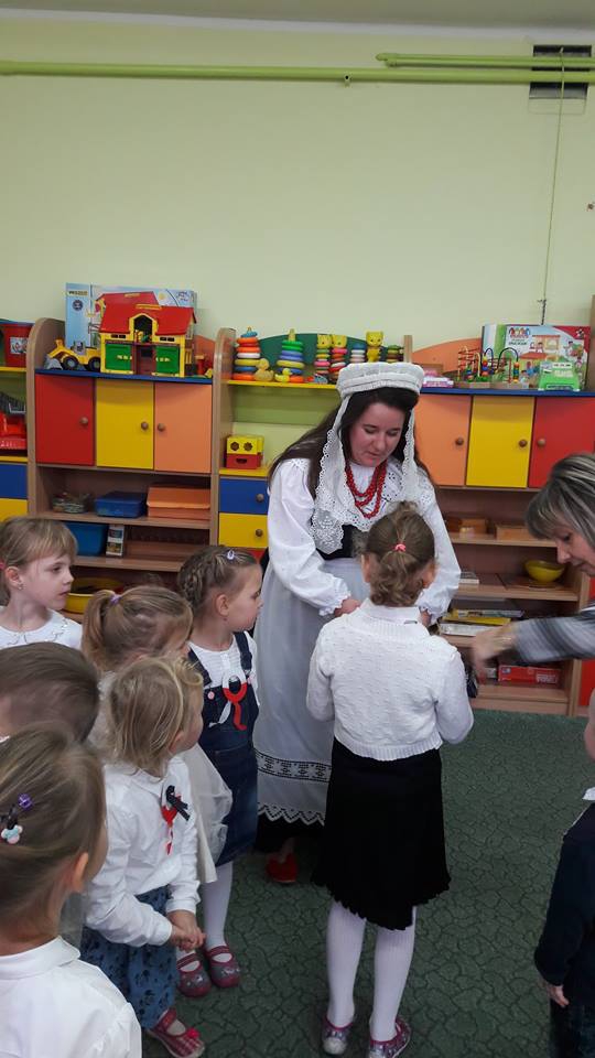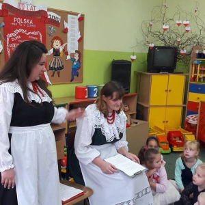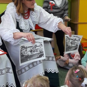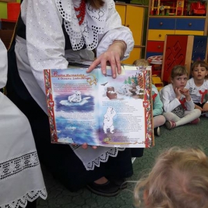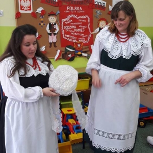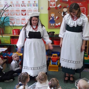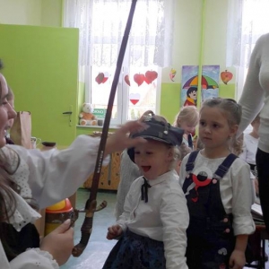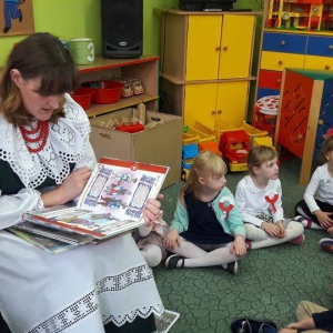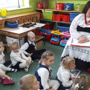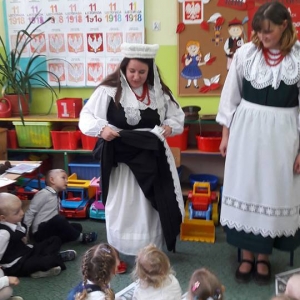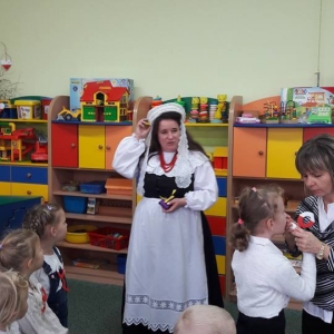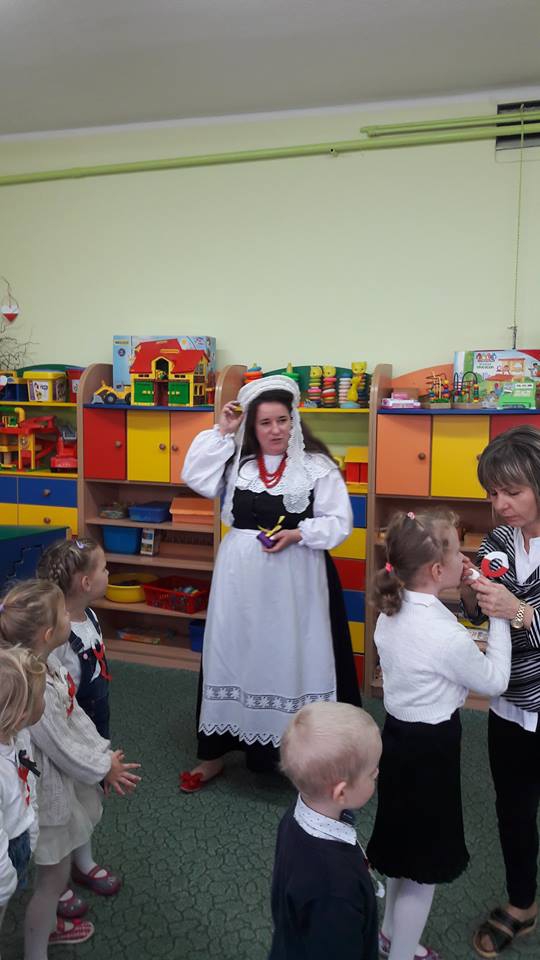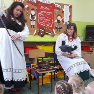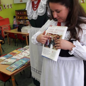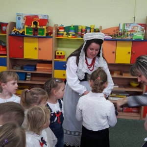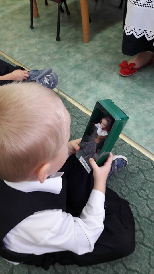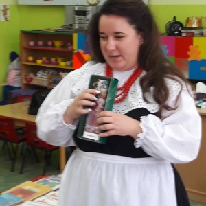 Bibliotekarki wzbudziły duże zainteresowanie wśród przedszkolaków swoim ubiorem. Miały na sobie ludowy strój krotoszyński. Przedstawiły dzieciom kolekcję lalek ubranych w stroje ludowe.