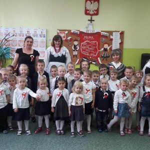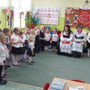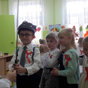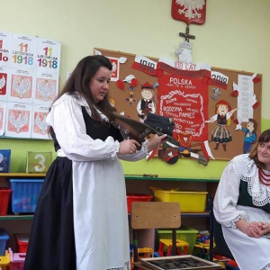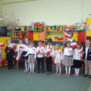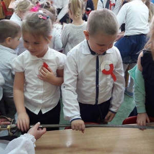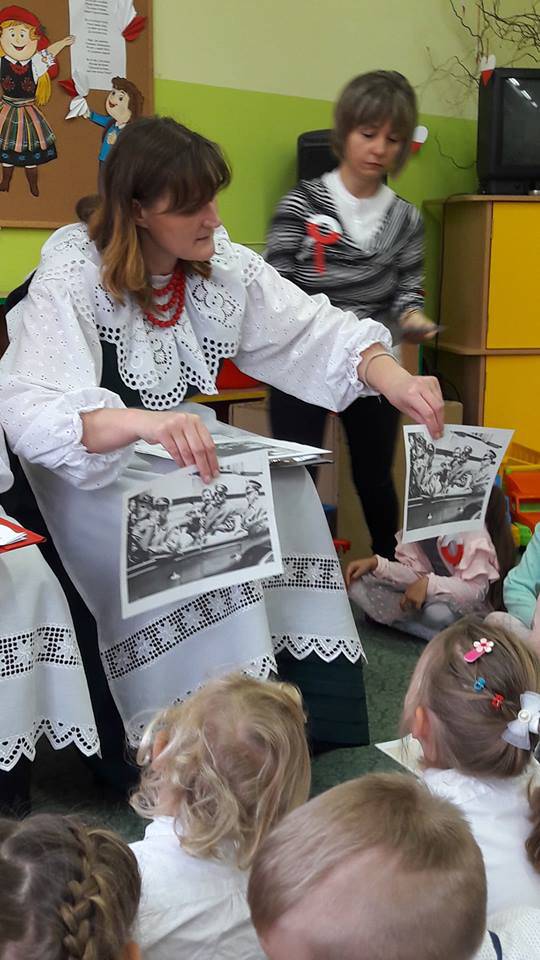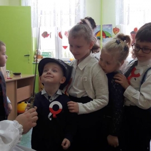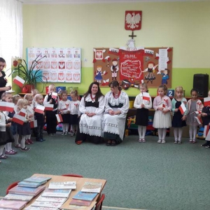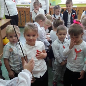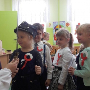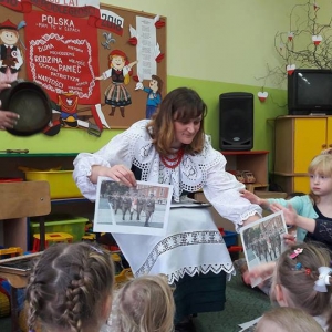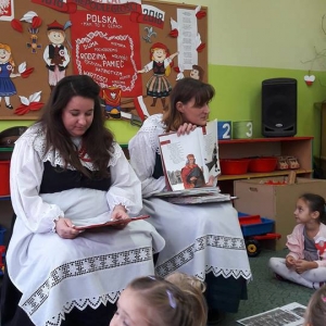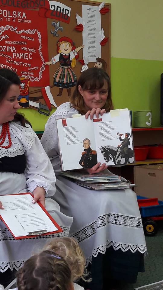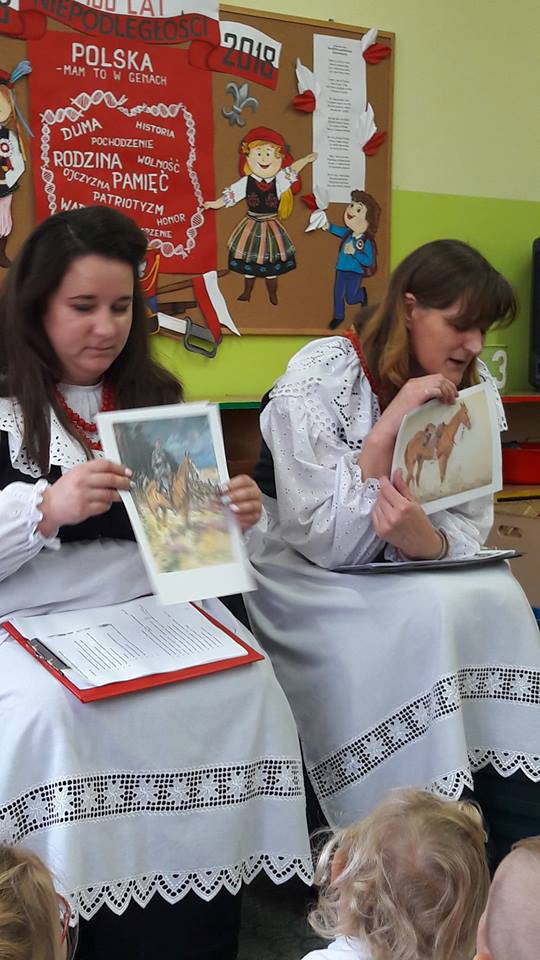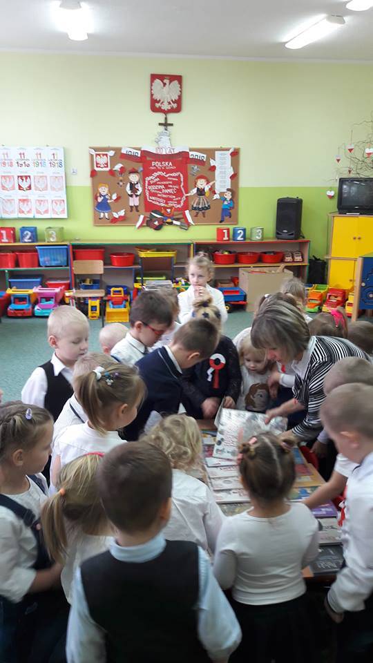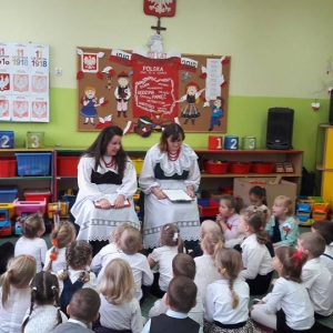 Bibliotekarki przedstawiły najmłodszym historię Polski. Opowiedziały jak rodacy utracili wolność na 123 lata. Dzieci dowiedziały się również kim był Józef Piłsudski i jaką rolę odegrał dla naszego narodu. Małych słuchaczy bardzo zainteresowały ciekawostki o Marszałku, o jego klaczy Kasztance i psie na którego wołał Pies.