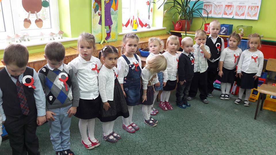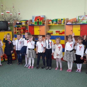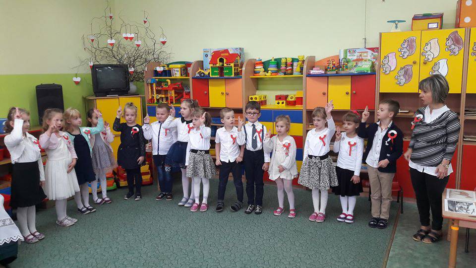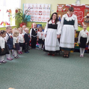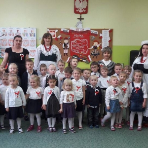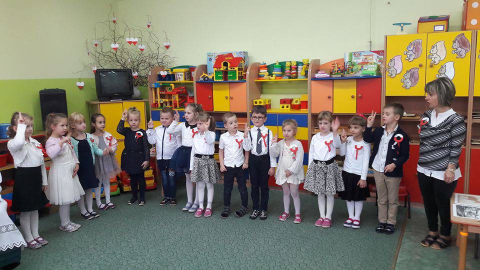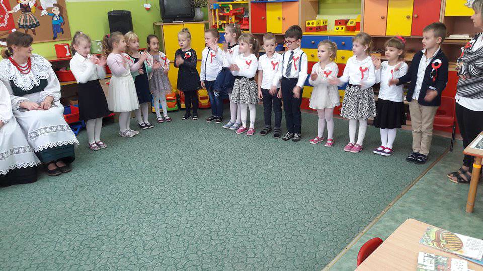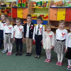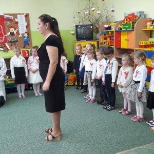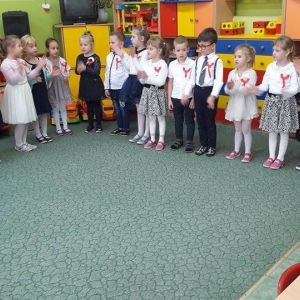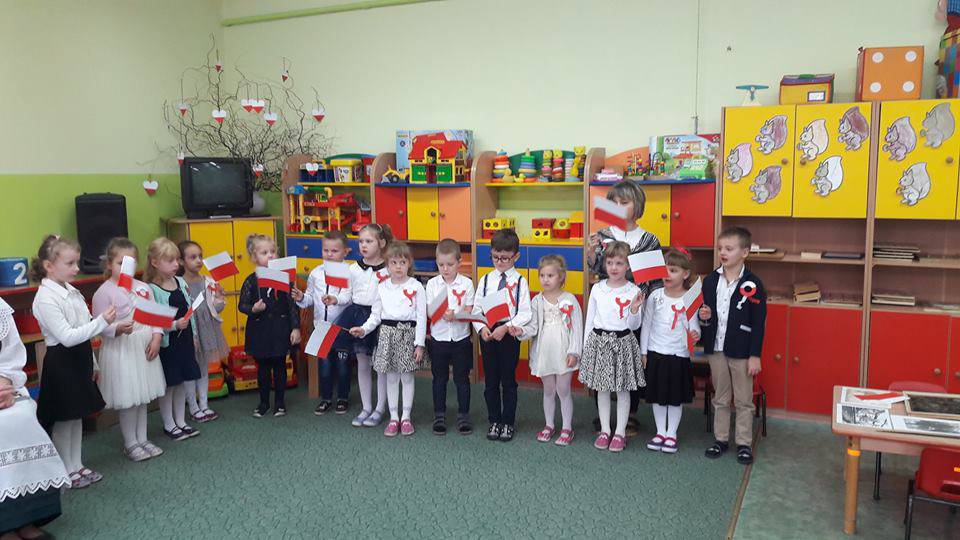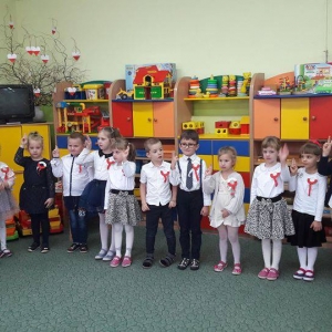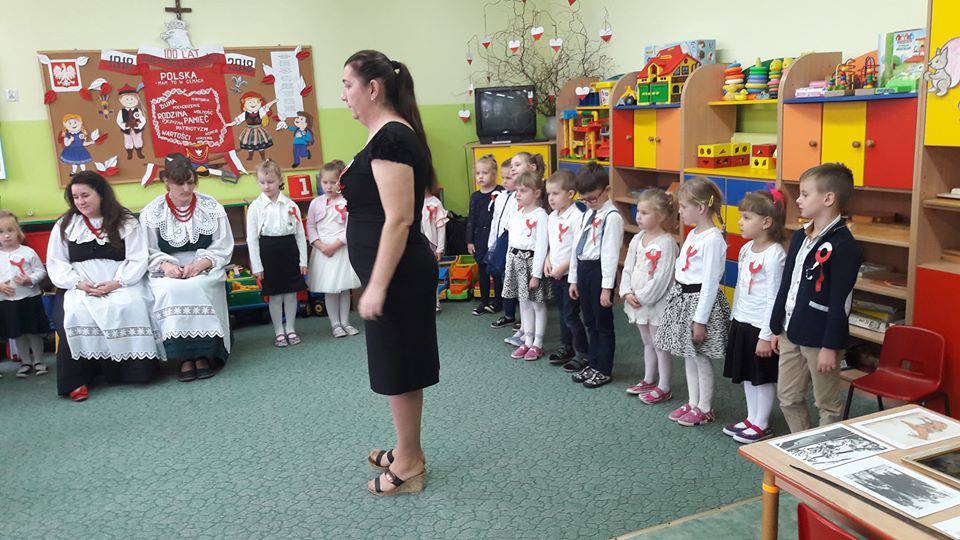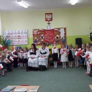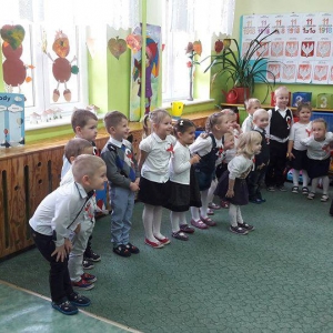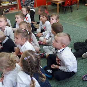 Wszyscy odśpiewali hymn. Dzieci recytowały wiersze o tematyce patriotycznej.