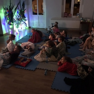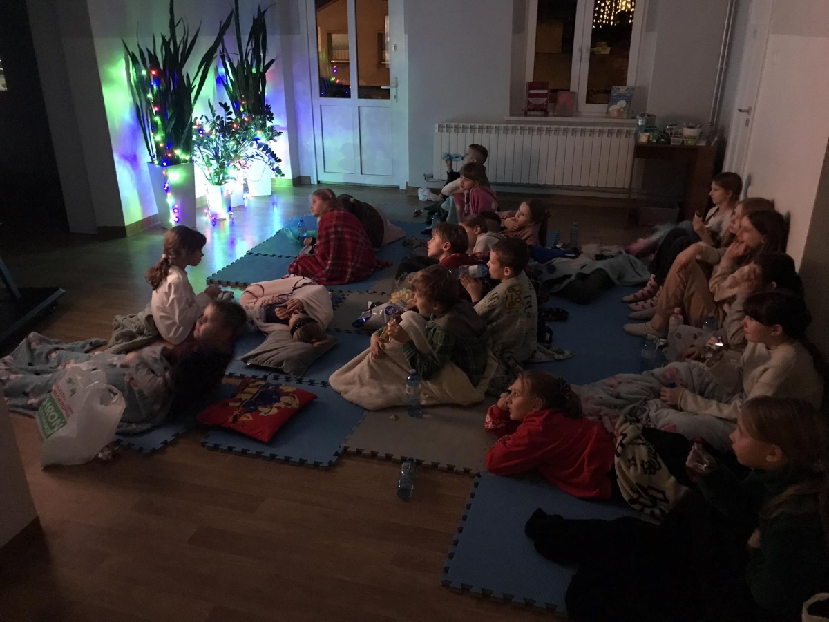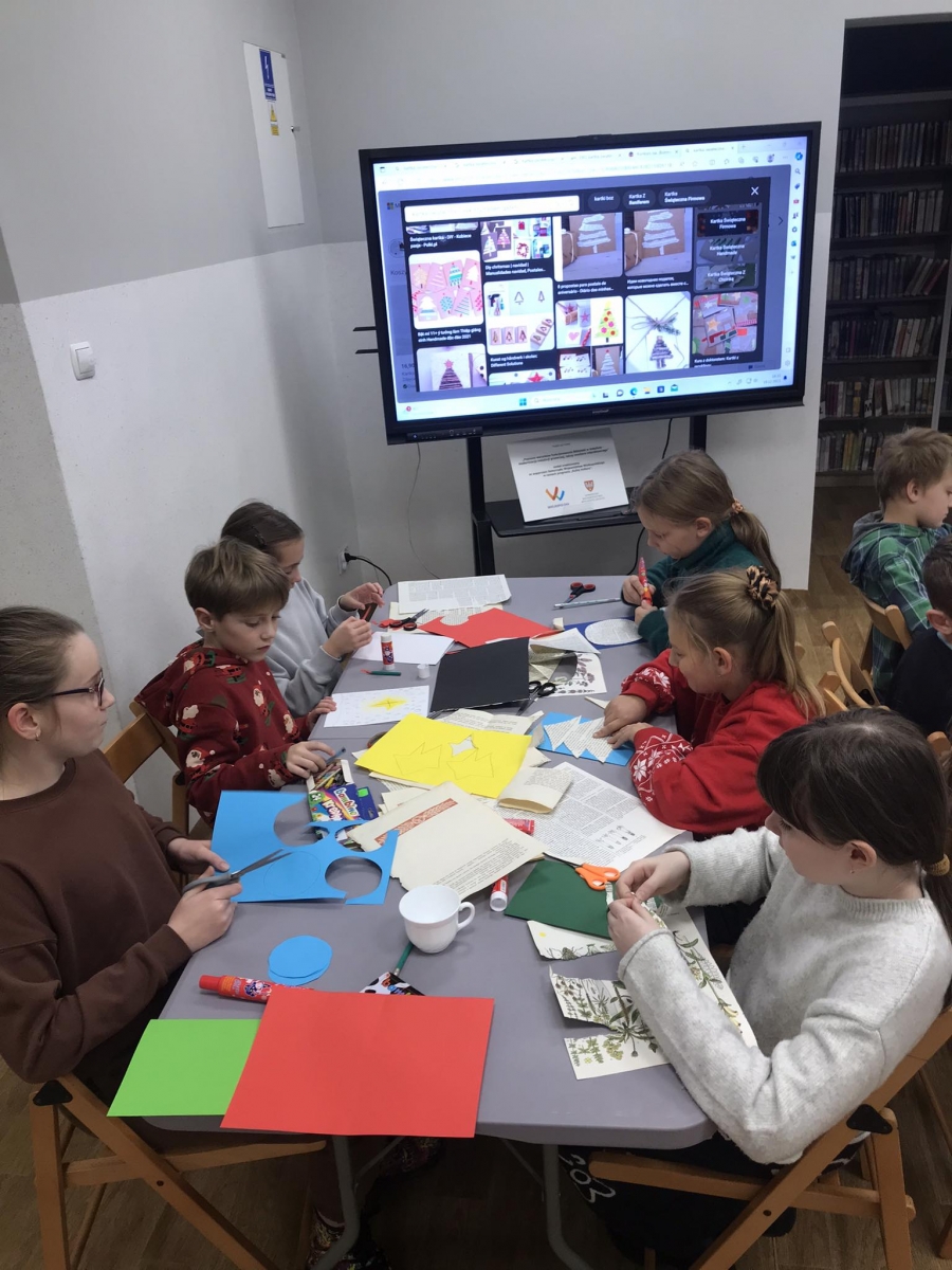 Gdy wróciliśmy do biblioteki, uczestnicy otuleni kocami obejrzeli świąteczny seans. Było miło, klimatycznie i co najważniejsze – bardzo świątecznie.