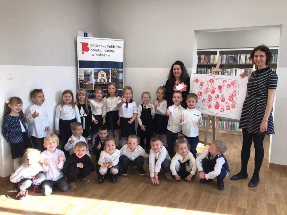 W środę, 10 listopada 2021 r. kobylińską bibliotekę odwiedziły przedszkolaki z grupy „Kubusie” wraz z Paniami: Iwoną Sitarz oraz Małgorzatą Kupczyk. Tematem spotkania było Święto Niepodległości, które odbywało się nazajutrz.