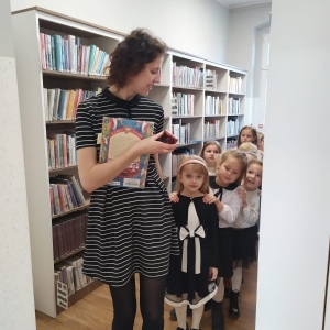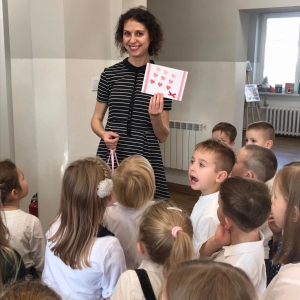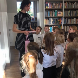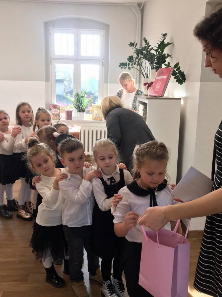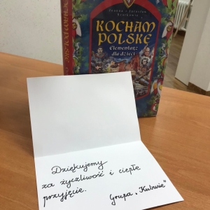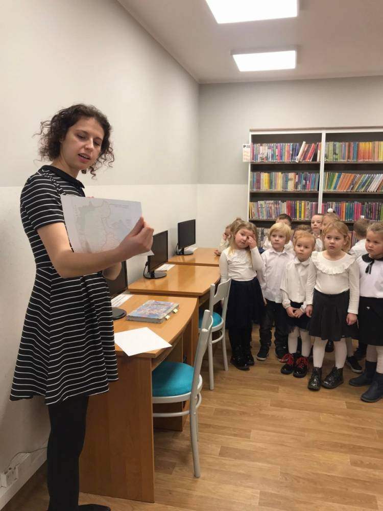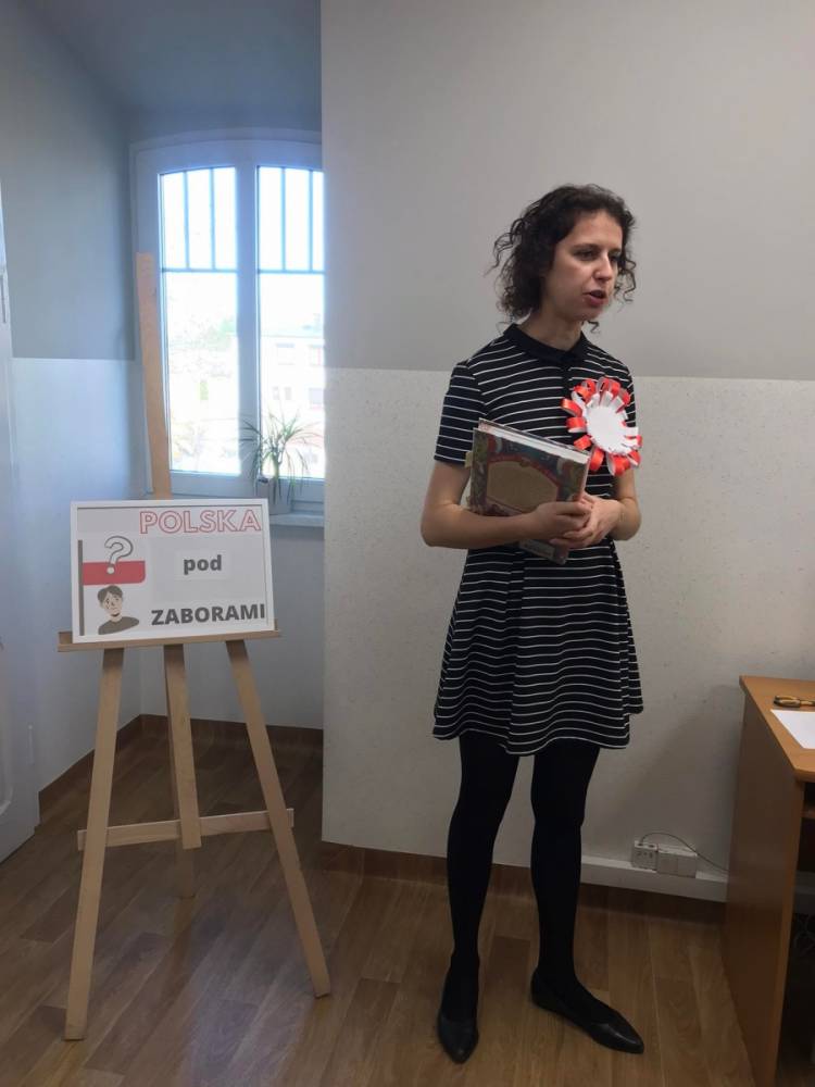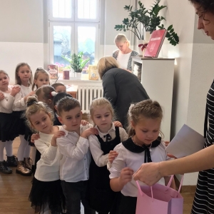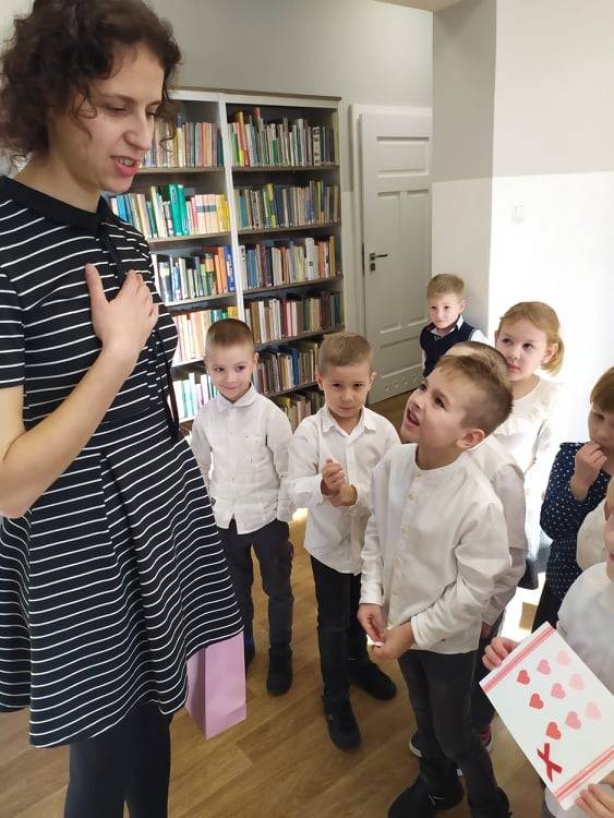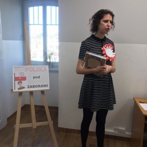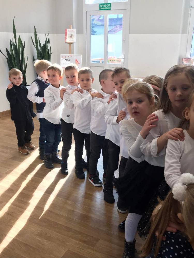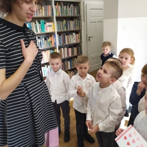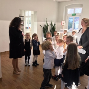 Dzieci z zainteresowaniem słuchały walecznej historii naszej Ojczyzny. Dowiedziały się, że Polacy, aby zachować własny język i obyczaje musieli w konspiracji posługiwać się ojczystym językiem, edukowali dzieci, czytali polskie książki, słuchali pieśni patriotycznych. Jedną z nich, „Rotę” Marii Konopnickiej, zaprezentowała dla najmłodszych pani bibliotekarka – Katarzyna Bella. :-)
