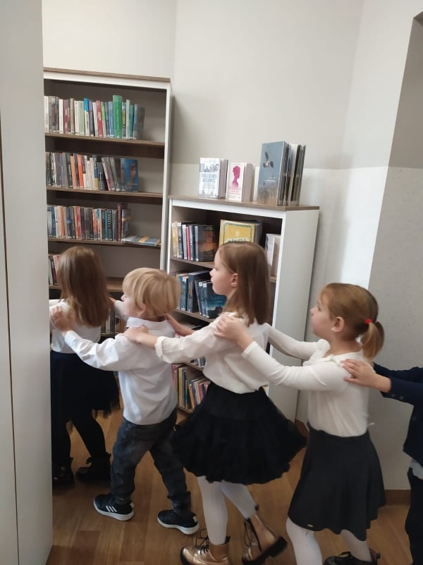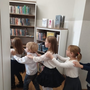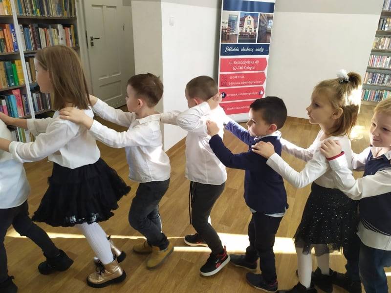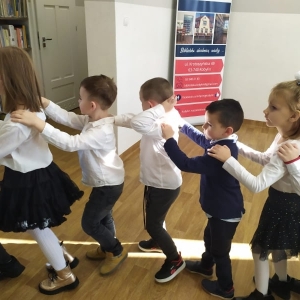 Panie bibliotekarki przygotowały dla najmłodszych POCIĄG DO WIEDZY. W rytm piosenki „Jedzie pociąg z daleka” dzieci odwiedzały Stacje Wiedzy, gdzie uzyskiwały historyczne informacje o losach Polski oraz Polaków podczas zaborów.