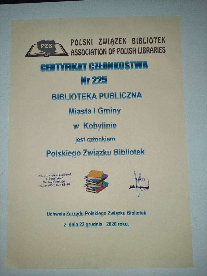 W dniach 9-10 września 2021 roku pracownicy kobylińskiej książnicy uczestniczyli w obchodach 20-lecia Polskiego Związku Bibliotek, które odbyło się w Toruniu. W ramach spotkania jubileuszowego odbyło się Walne Zgromadzenie Członków, a także szkolenie ,,O przyszłości bibliotek”.