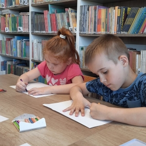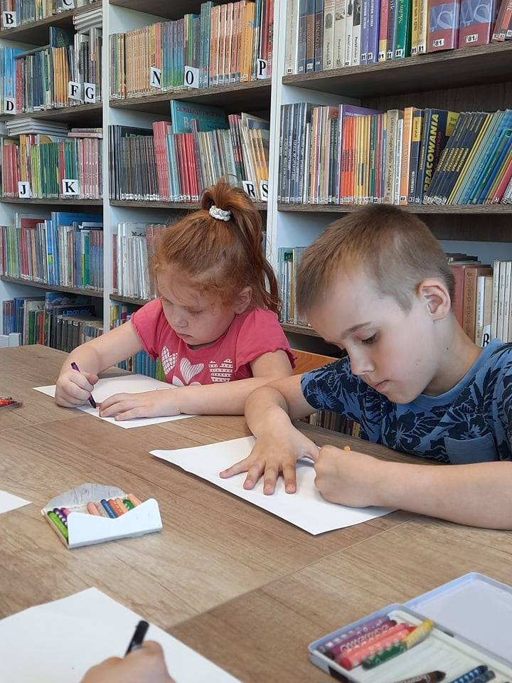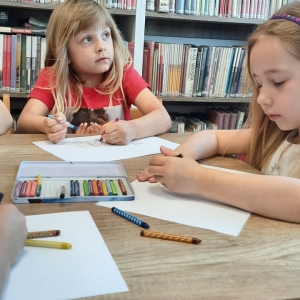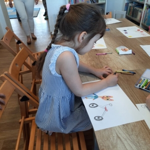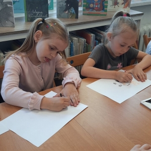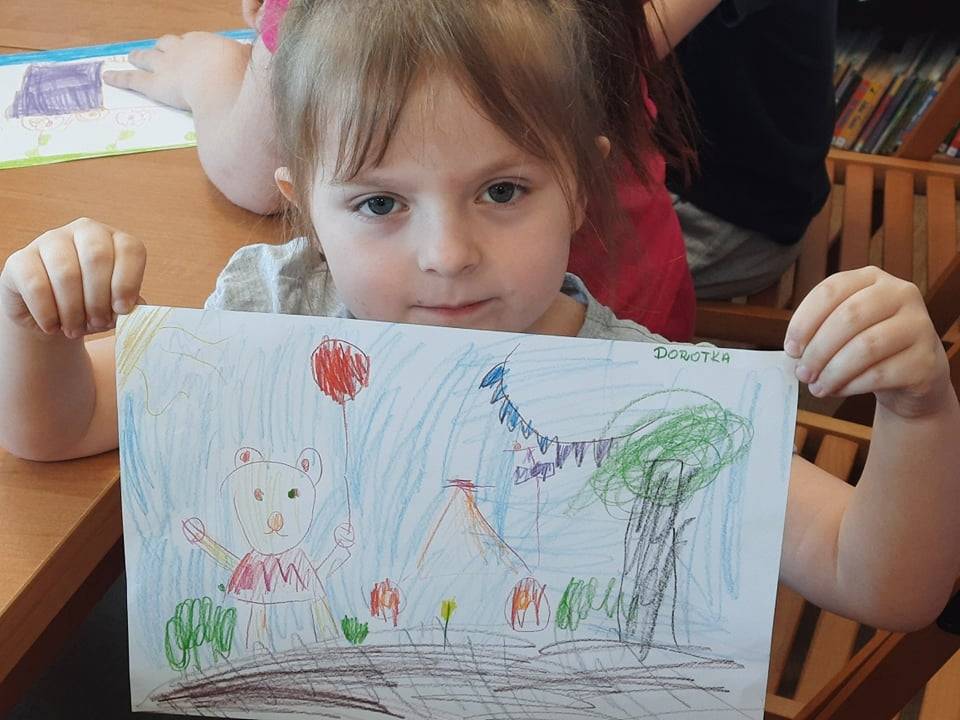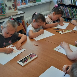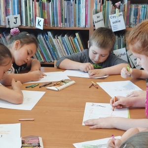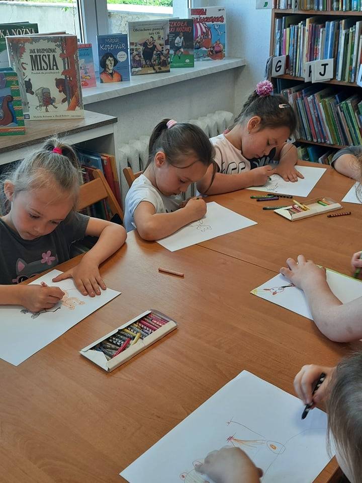 Kończąc spotkanie dzieci otrzymały cukierki oraz kolorowanki z hasłem Tygodnia Bibliotek.