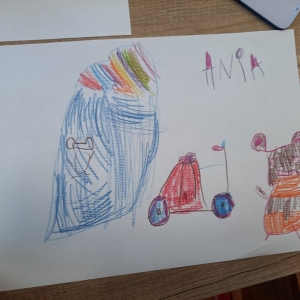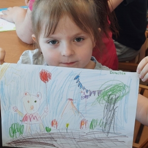 Grupa „Pszczółek” wysłuchała bajki „Tupcio Chrupcio. Urodzinowy prezent” Elizy Piotrowskiej, po czym dzieci malowały własne zakończenie historii głównego bohatera. :-)