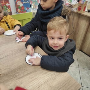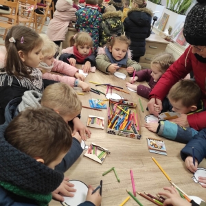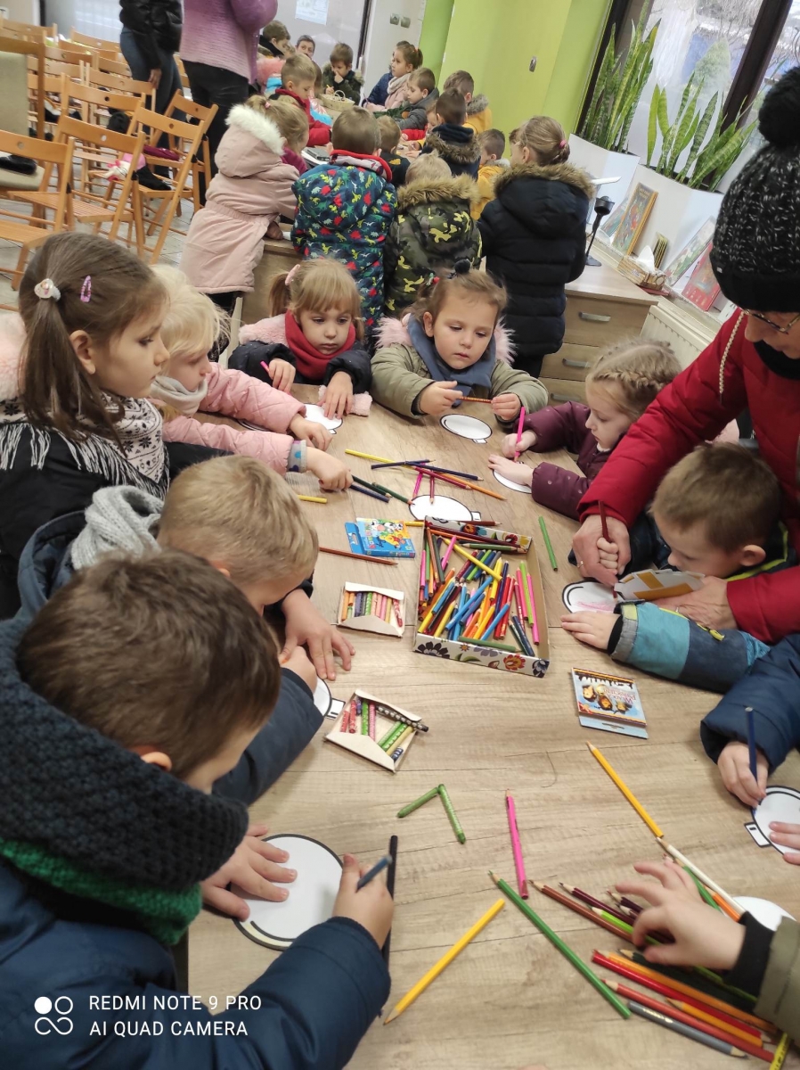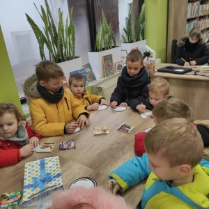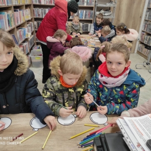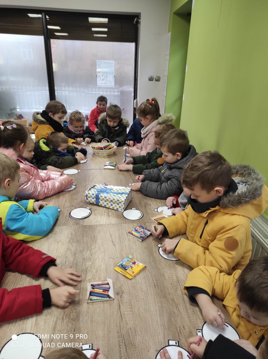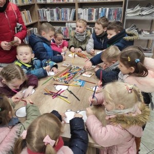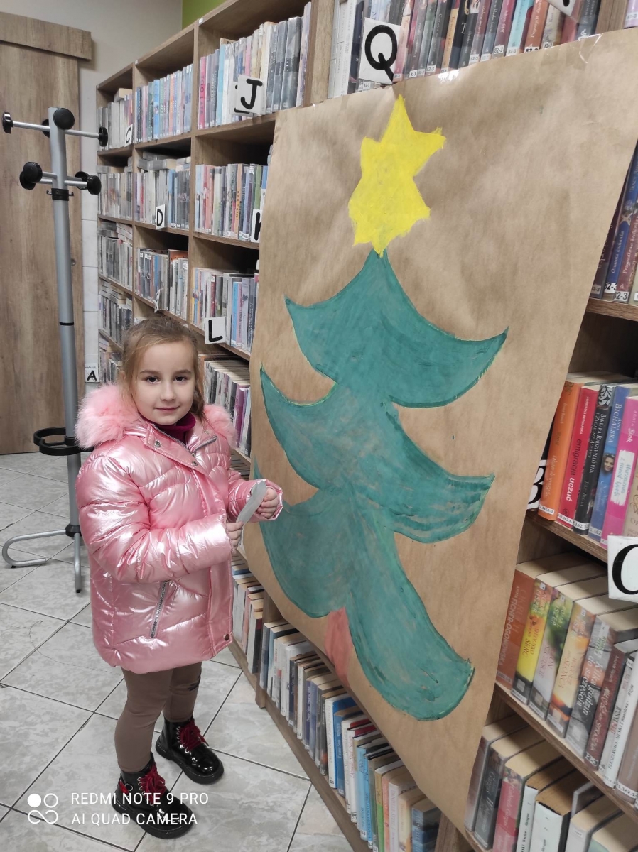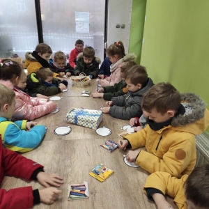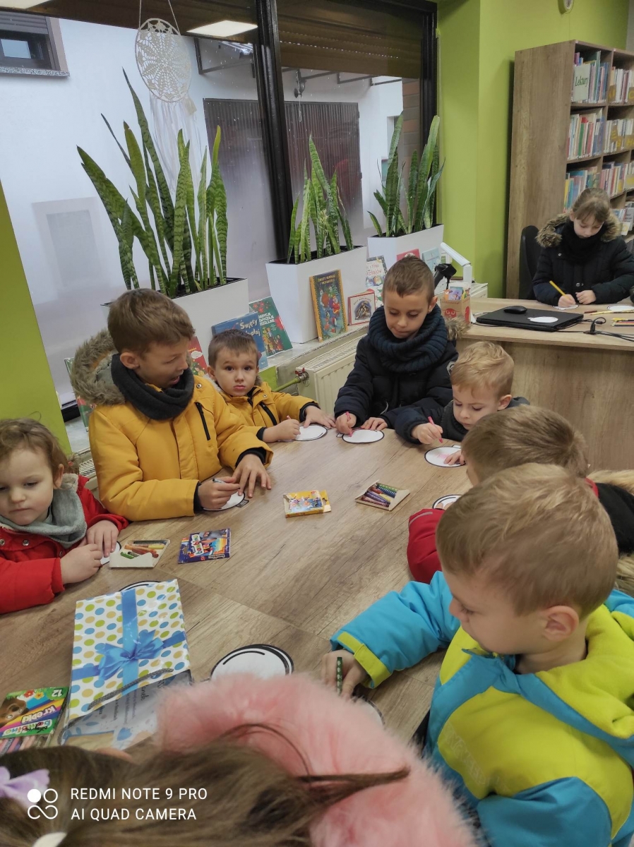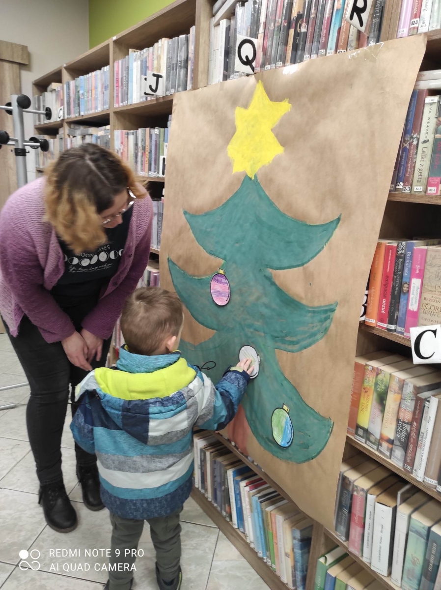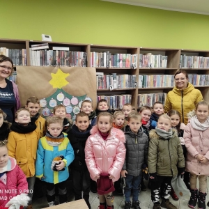 12 grudnia 2022 r. do Filii Bibliotecznej w Smolicach zawitały dzieci z miejscowego przedszkola, z grupy Sówek oraz Pszczółek. Okazją do wizyty w bibliotece były zbliżające się Święta Bożego Narodzenia. Młodzi czytelnicy z uwagą wysłuchali opowiadania „ Choinka” Sally Gilmore, nawiązującego do Gwiazdki. Po lekturze nasi milusińscy dostali zadanie do wykonania. Należało ozdobić otrzymane bombki z papieru według własnego pomysłu. Dzieci z wielkim zaangażowaniem zabrały się do pracy, a wykonanymi przez siebie ozdobami ustroiły papierową choinkę. Na zakończenie spotkania młodzi czytelnicy otrzymali świąteczne kolorowanki oraz listę świątecznych obowiązków.