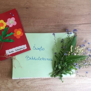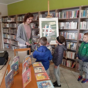 Z okazji Tygodnia Bibliotek oraz Dnia Bibliotekarza dzieci wręczyły pani bibliotekarce kwiaty, laurkę z życzeniami oraz album z namalowanymi ilustracjami przedstawiającymi panie bibliotekarki i bibliotekę. Wszystkie dzieci chórem wyrecytowały także wierszyk o książkach.
