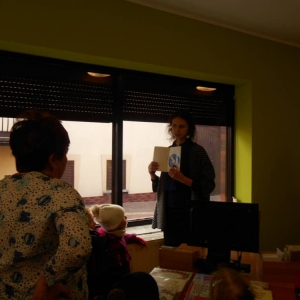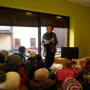 Na początku spotkania dzieci dowiedziały się na czym polega praca w bibliotece, jak należy obchodzić się z książką. Mali goście poznali kartę książki, czytelnika, kartę katalogową oraz katalog alfabetyczny. Dzieci poznały również najstarszą księgę inwentarzową smolickiej biblioteki.