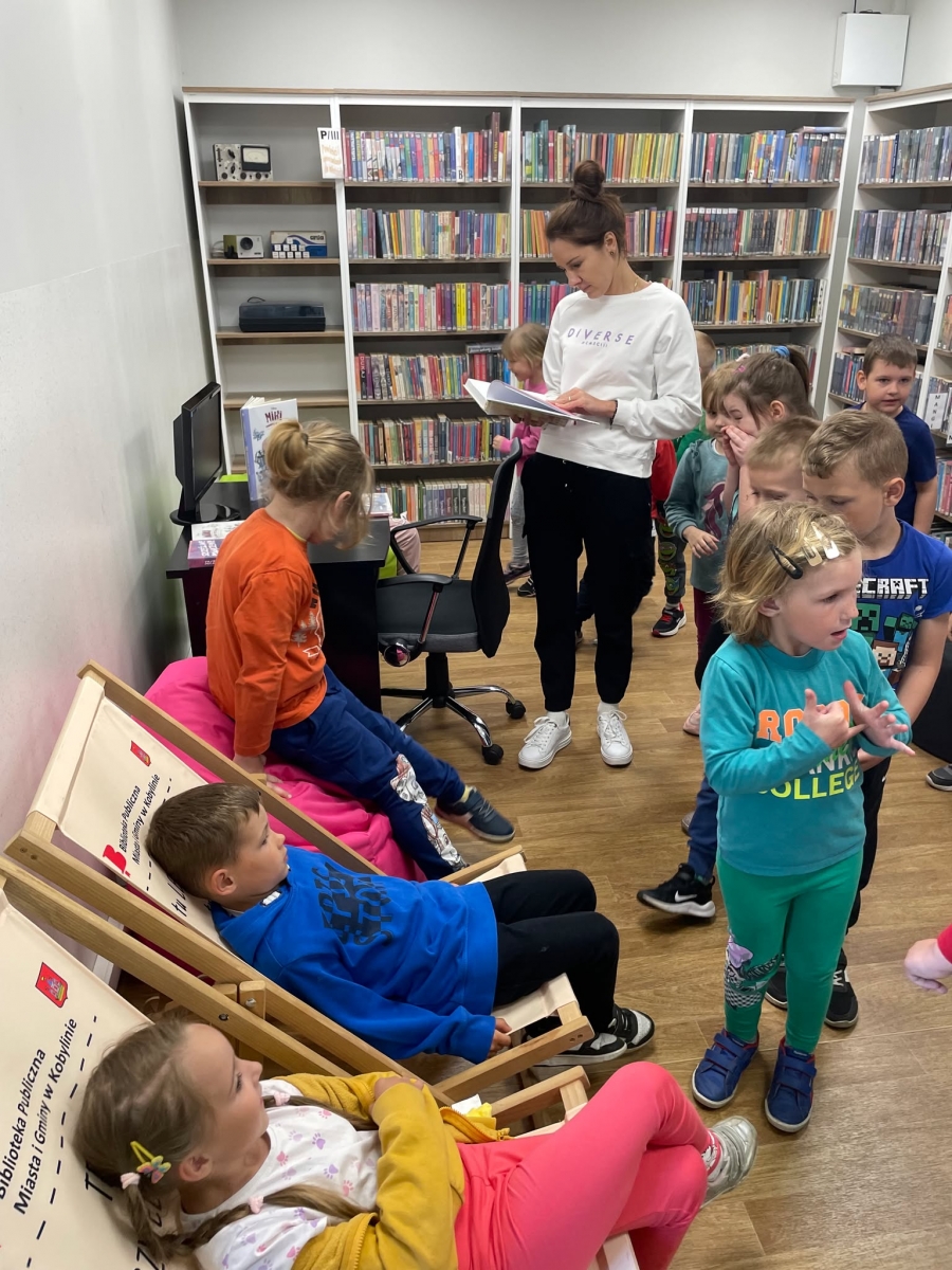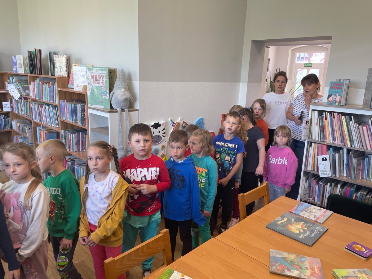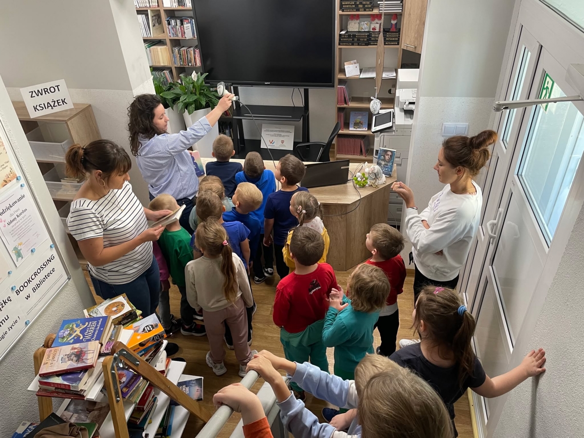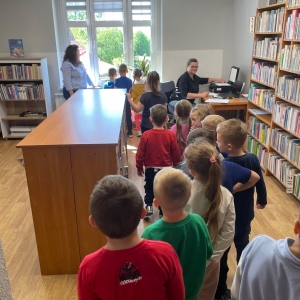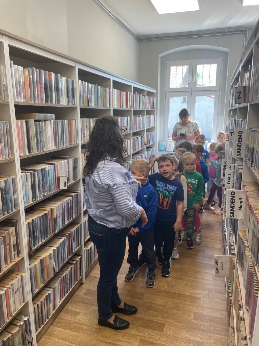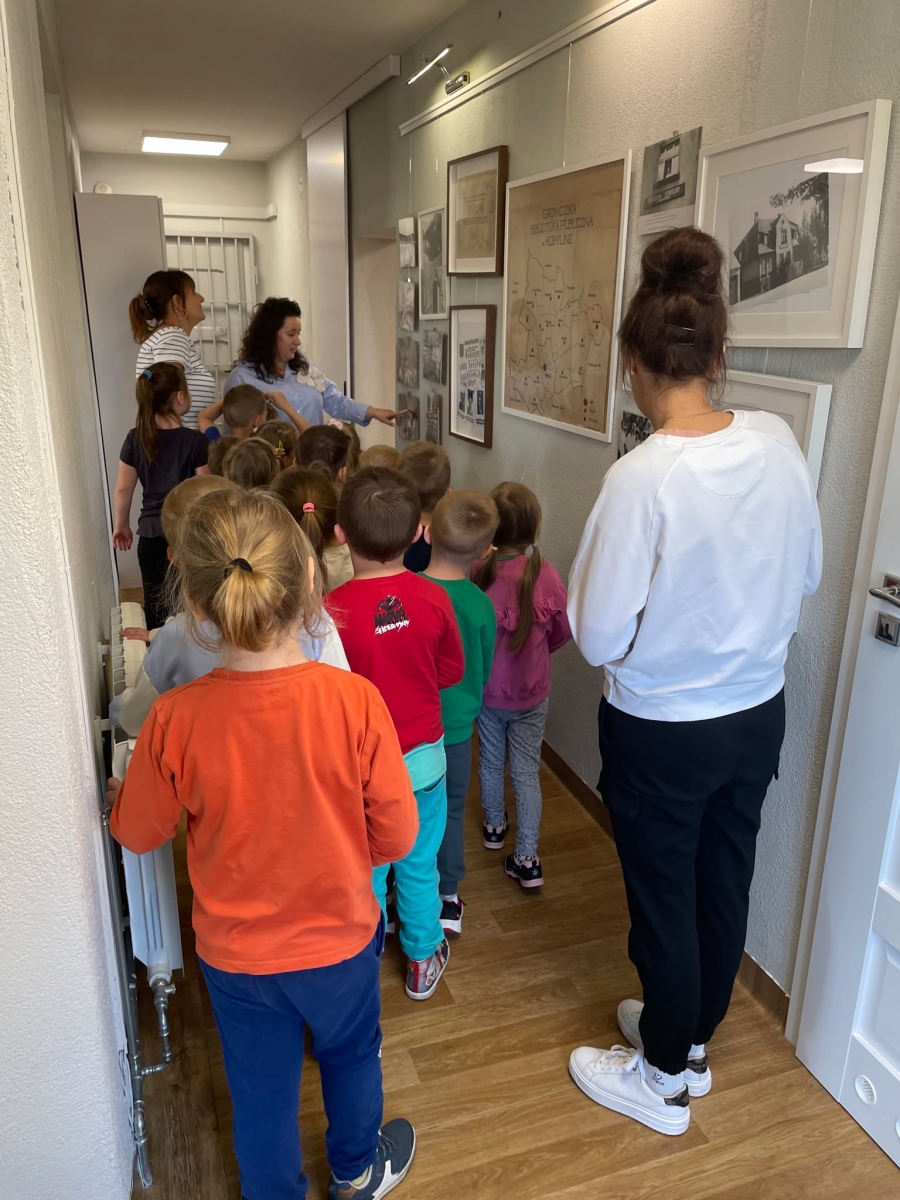 Przedszkolacy zwiedzili wszystkie pomieszczenia, przy czym największe zainteresowanie wzbudziła w nich czytelnia dla dzieci.