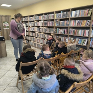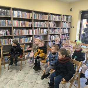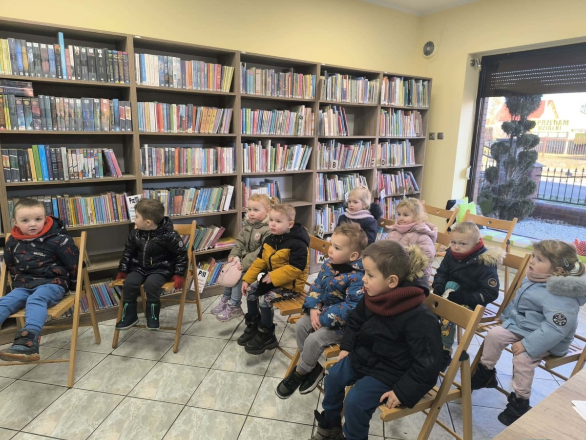 Młodzi czytelnicy podczas swojej pierwszej wizyty dowiedzieli się co to jest biblioteka, co się w niej znajduje. Dzieci zapoznały się z zasadami postępowania i szanowania książek. W trakcie spotkania odbyło się również głośne czytanie. Dzieci wysłuchały opowiadania pt: „Puchatek spieszy z pomocą” K. Zoehfeld.