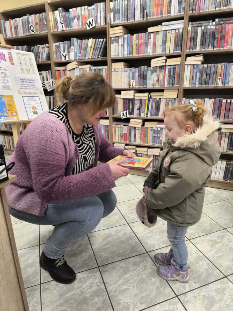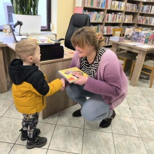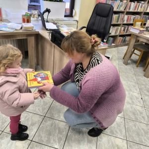 Na zakończenie wizyty każdy przedszkolak miał możliwość wypożyczenia książki według własnych zainteresowań i upodobań. Bajki zostaną przeczytane wspólnie z rodzicami w domowym zaciszu.