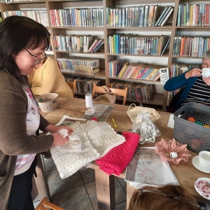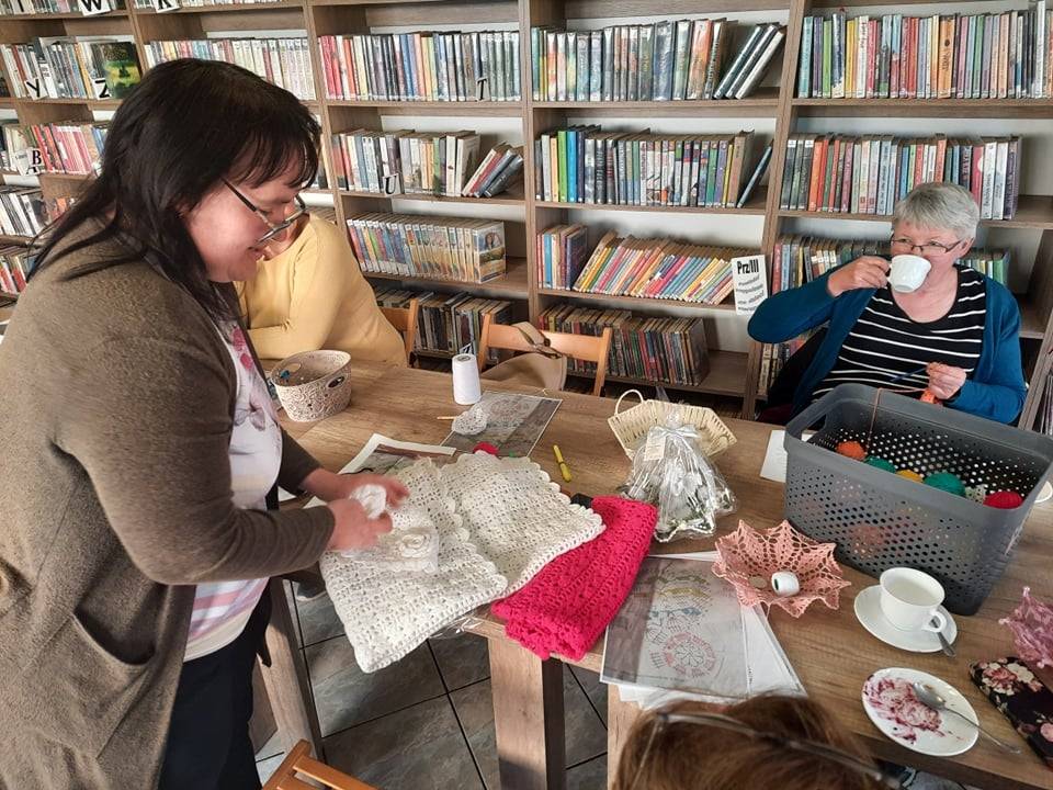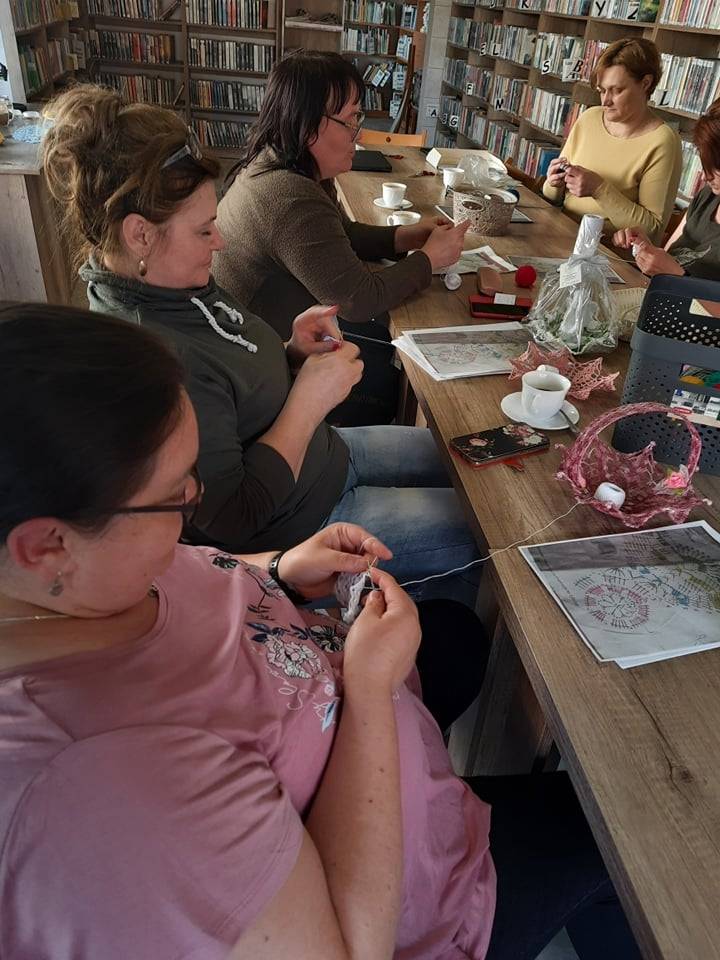 W piątkowe popołudnie 6 maja 2022 r. w Filii Bibliotecznej w Smolicach, kolejny już raz odbyło się spotkanie szydełkomaniaczek. Prowadzącą zajęcia była Pani Emilia Kaczmarek ze Smolic, znana wszystkim rękodzielniczka. Uczestniczki warsztatów tworzyły koszyczki oraz bardzo popularne łapacze snów. Z jednego wzoru można było wykonać różne warianty dzieł szydełkowych. Podczas spotkania, przy aromatycznej kawie i pysznym cieście, powstały piękne arcydzieła.