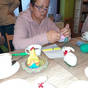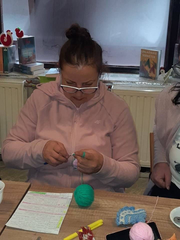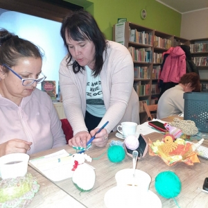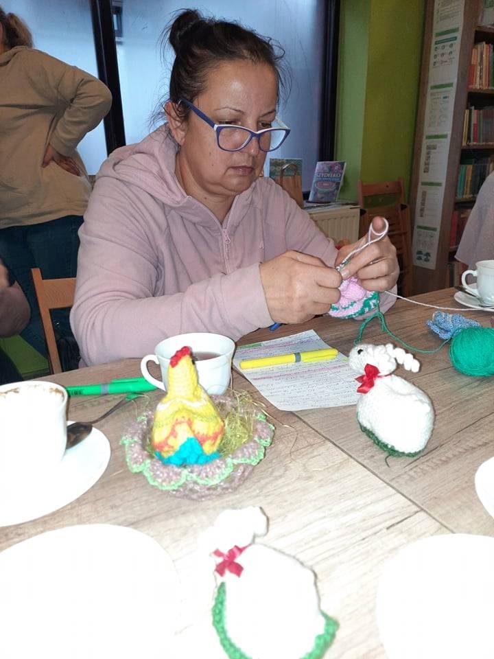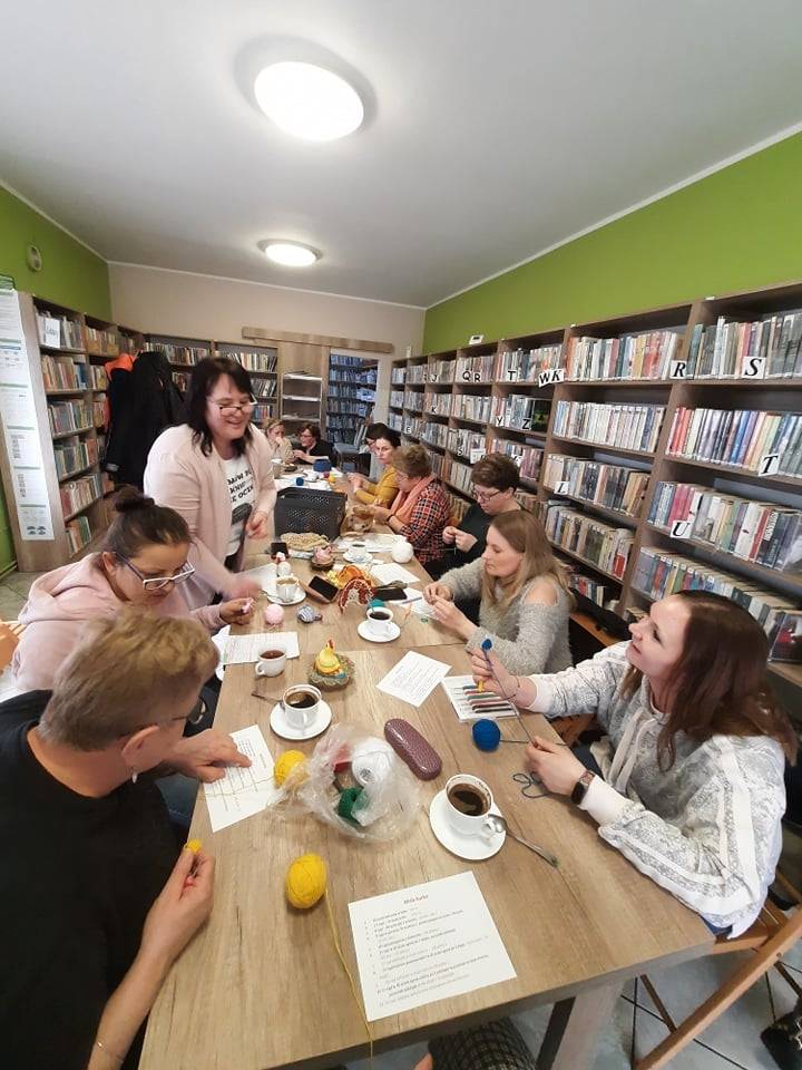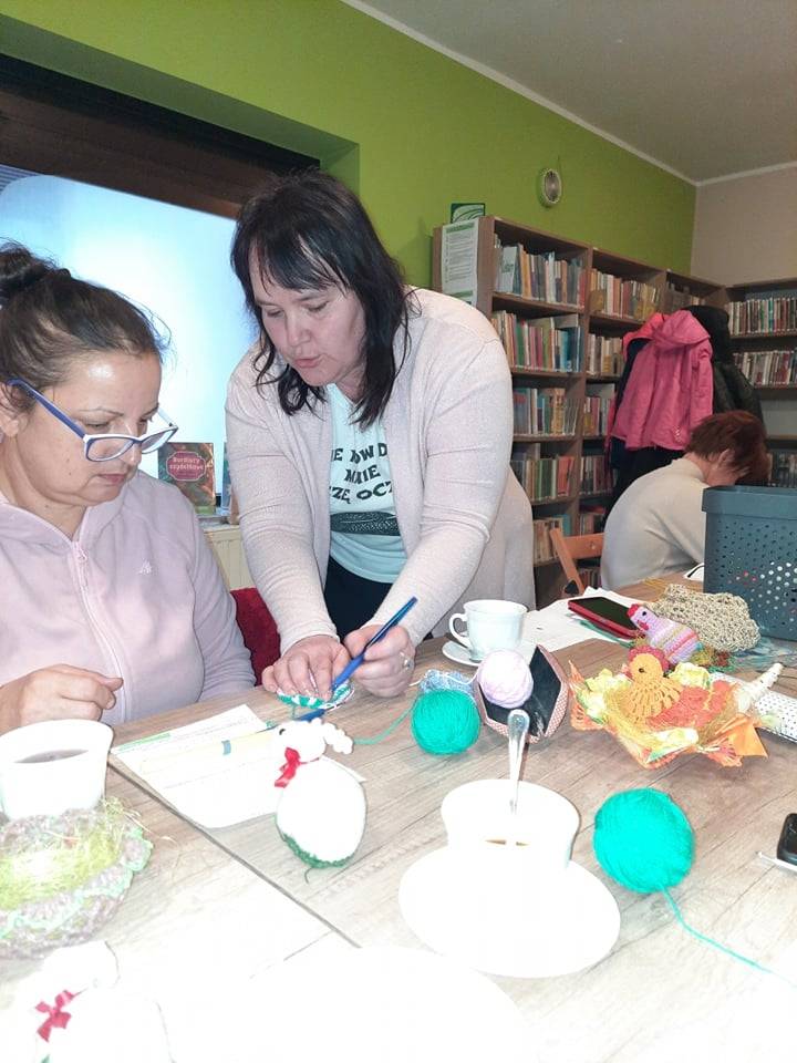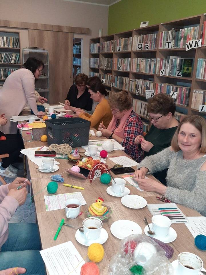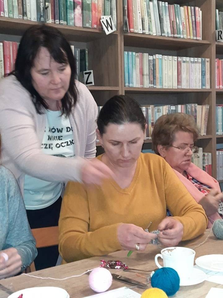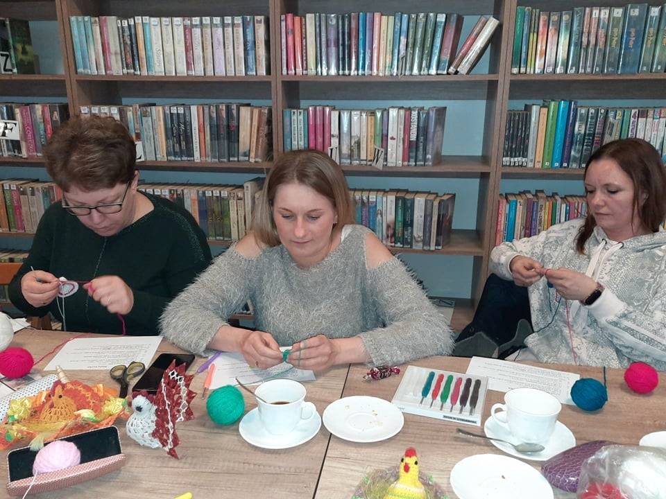 W czwartek 31 marca 2022 r. w Filii Bibliotecznej w Smolicach kolejny już raz spotkały się miłośniczki robótek ręcznych. Prowadzącą „Rękodzieło w bibliotece. Szydełkowanie z Emilią” była Pani Emilia Kaczmarek, mieszkanka Smolic a zarazem wielka wielbicielka rękodzieła. Pokazała uczestniczkom warsztatów jak w prosty sposób można wykonać ozdoby świąteczne. Kursantki wykonały kurki i zajączki, które staną się ozdobą wielkanocnych stołów. Panie w coraz liczniejszym gronie, przy kawie i pysznym cieście, wymieniając się doświadczeniami w sztuce szydełkowania, miło spędziły chłodny, wiosenny wieczór.