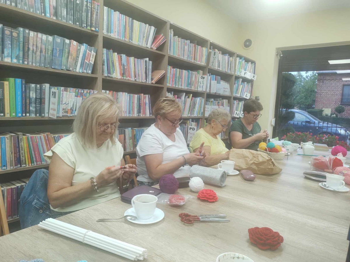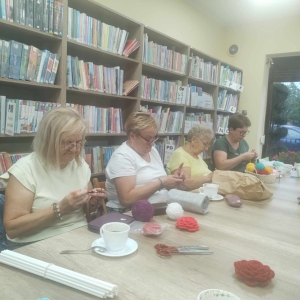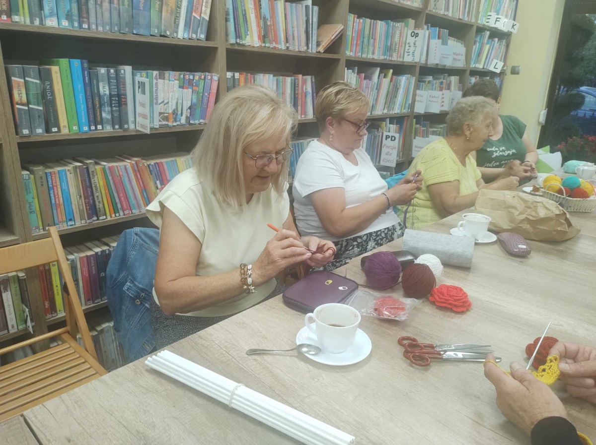 W piątek 22 września w Filii Bibliotecznej w Smolicach odbyło się spotkanie miłośniczek szydełkowania. Na pierwszych powakacyjnych warsztatach Rękodzieło w bibliotece, panie pod okiem instruktorki, dziergały kwiaty na szydełku. Prowadzącą warsztaty była pani Irena Konowalczyk z Zalesia Wielkiego, miłośniczka robótek ręcznych. W miłej atmosferze, przy kawie i cieście, z rąk uczestniczek wyszły kolorowe ozdoby. Podczas jesiennych dni, rozświetlą każde pomieszczenie.