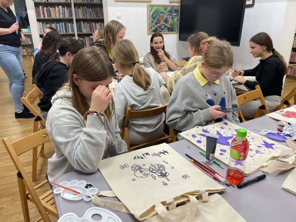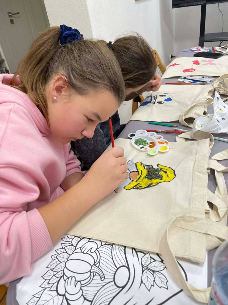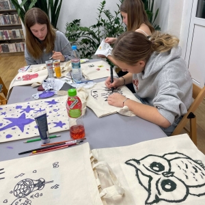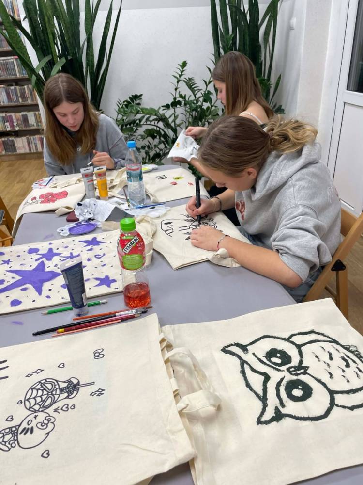 Nadszedł czas, by popracować plastycznie. Uczestnicy otrzymali bawełniane torby oraz farby. Po wybraniu szablonów, przerysowywali je na torby, po czym – malowali. Efekty są niesamowite! Zapraszamy do obejrzenia galerii zdjęć.
