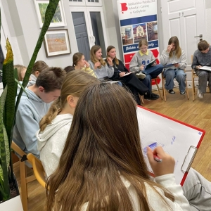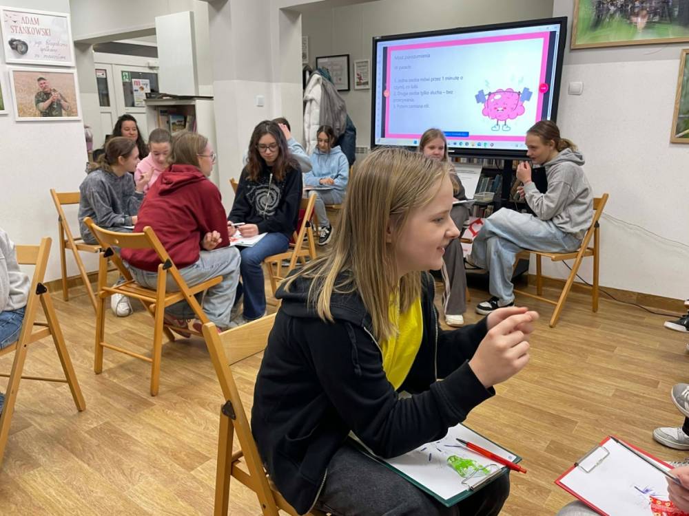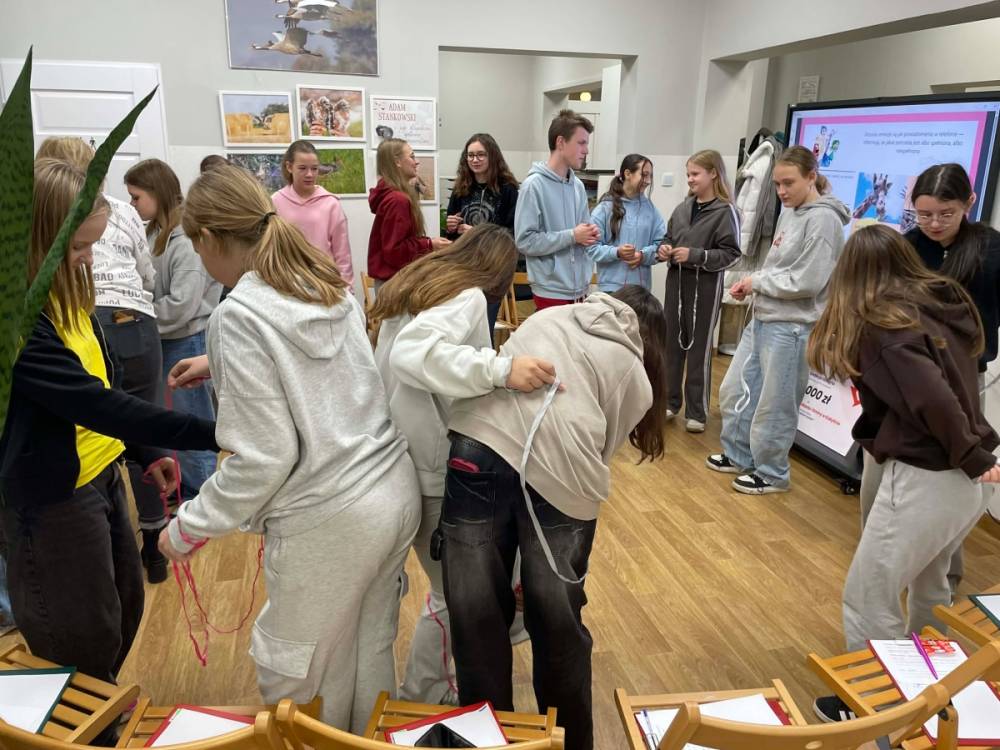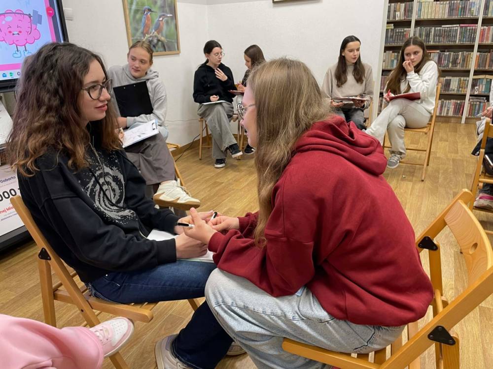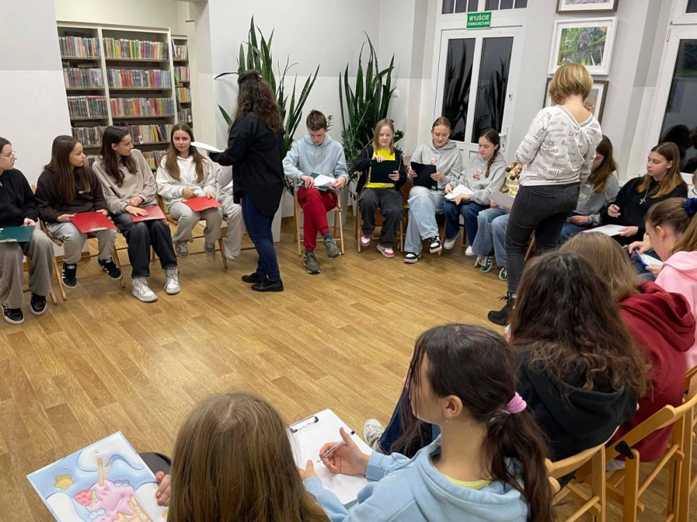 W piątek 21 listopada 2025 r. w naszej bibliotece po raz kolejny odbyły się warsztaty dla młodzieży, tym razem pt. „RELacje”. Zajęcia zorganizowane zostały w ramach projektu BIBLIOTEKA MIEJSCEM SPOTKAŃ, dzięki IV edycji programu „Wspieramy Przyszłość” Fundacji Gobarto.