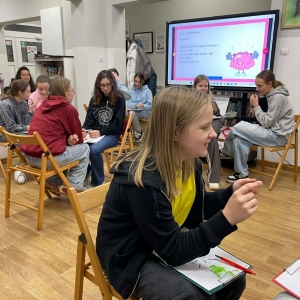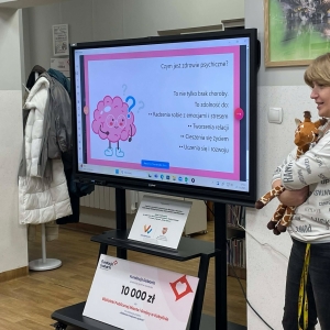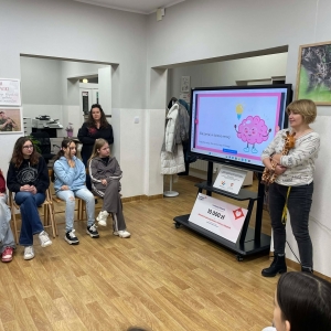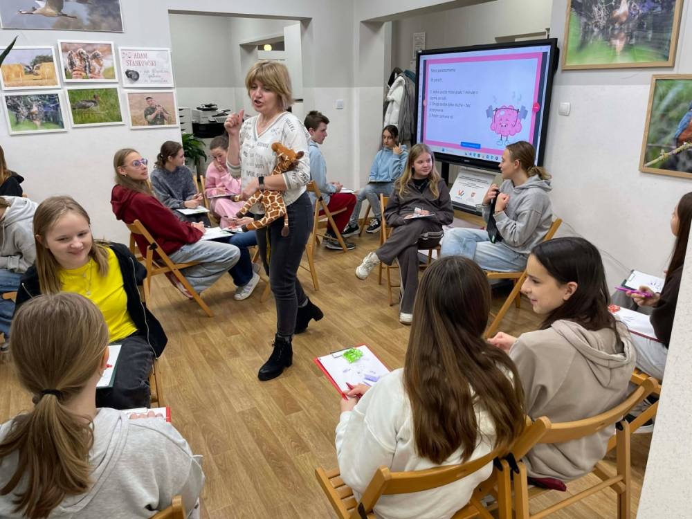 Rozpoczęliśmy od szukania odpowiedzi na pytanie „Jak ważne są relacje?”. Poprowadziła nas Pani Beata Głownicka – pedadog oraz psychoterapueta, która w bardzo delikatny sposób wprowadzała nas w temat emocji oraz zdrowia psychicznego. Uczestnicy zajęć mieli do wykonania kilka zadań, aby zajrzeć w głąb własnego wnętrza. Dowiedzieli się także, że w relacjach z drugim człowiekiem najważniejszy jest dialog. Na zakończenie, by wyciszyć umysł wysłuchali bajki terapeutycznej.