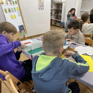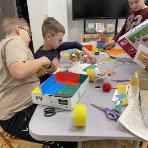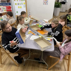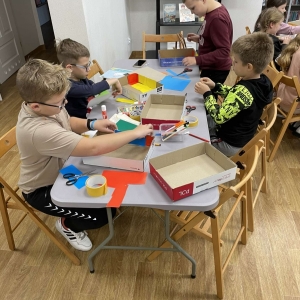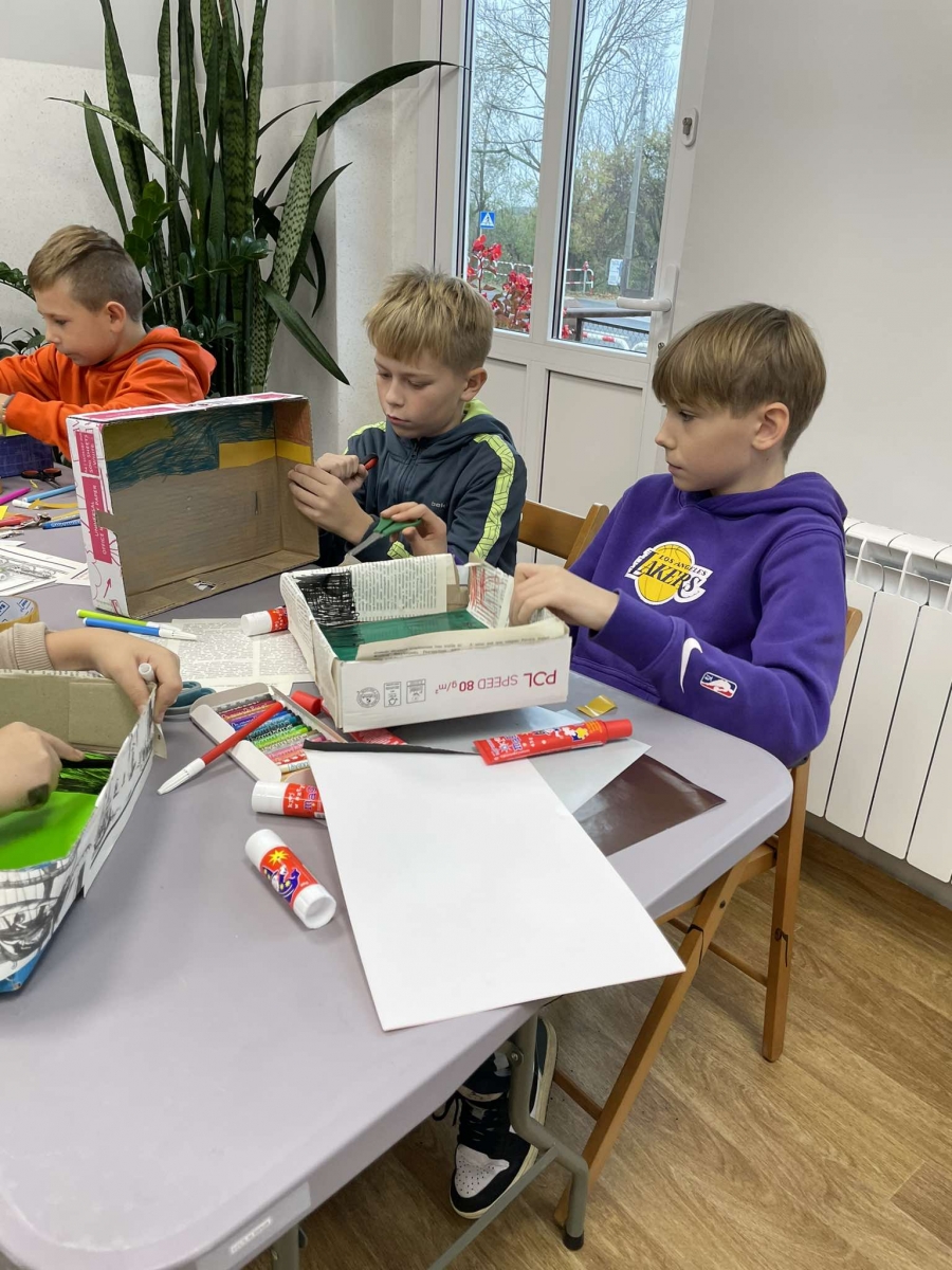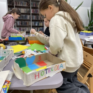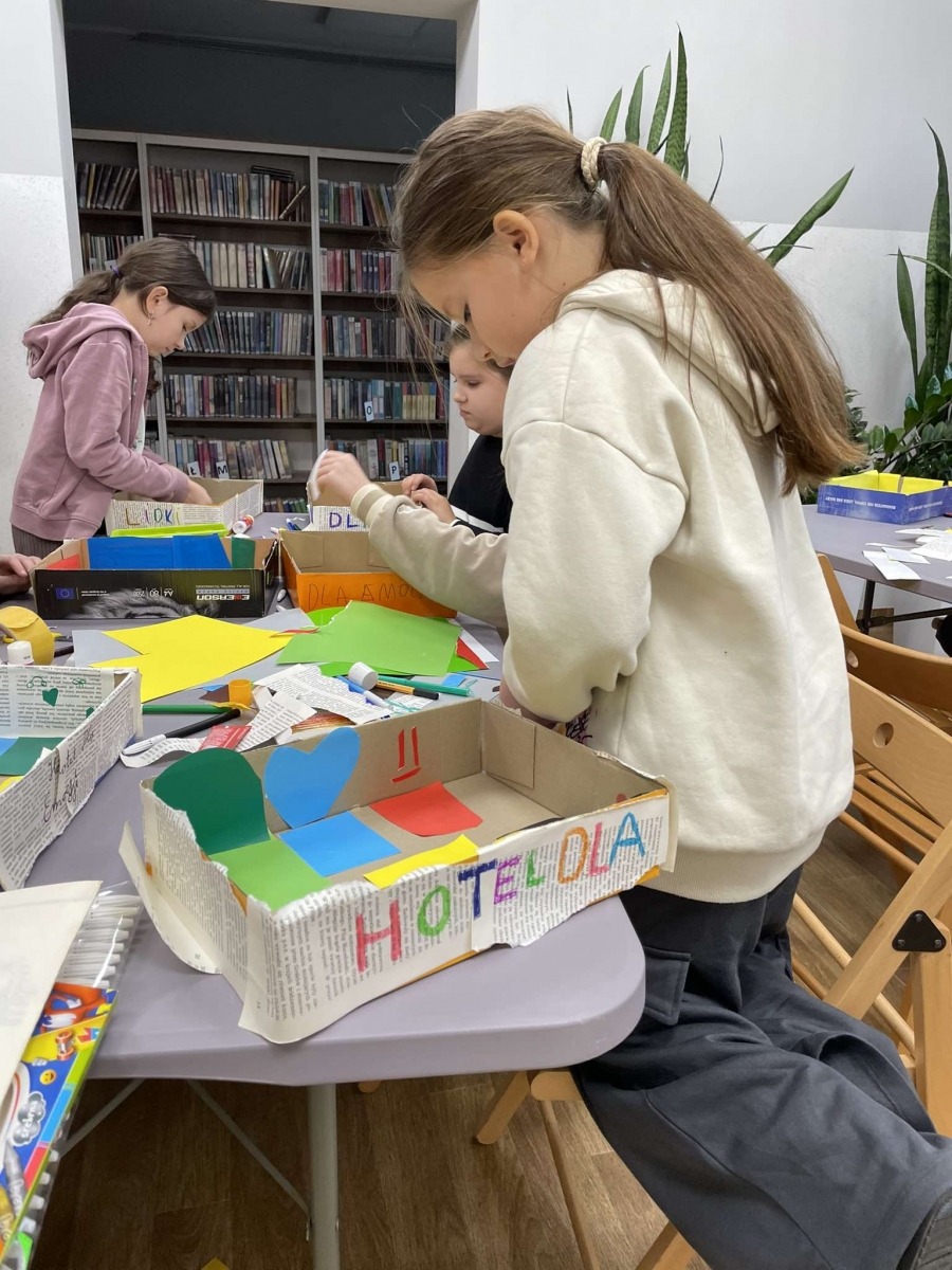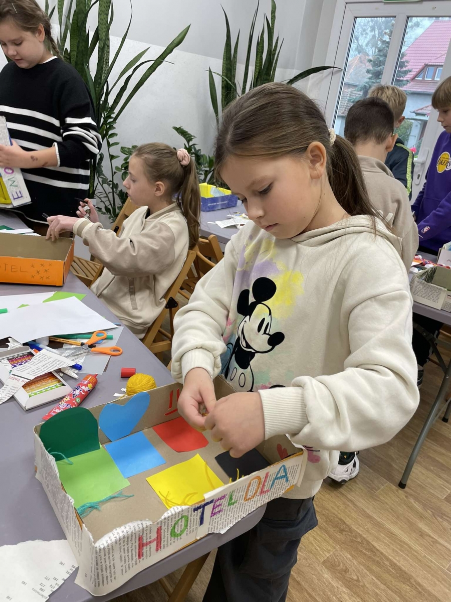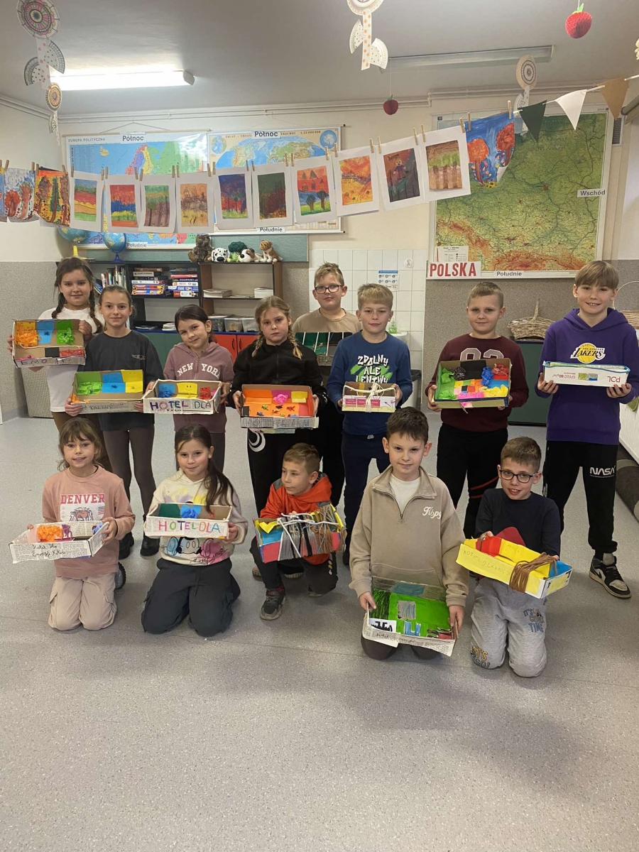 By wsłuchać się we własny wnętrze, we własny „hotel” dzieci tworzyły plastycznie swoje HOTELE DLA UCZUĆ. Słuchając siebie i swojego serca uczniowie ustrajali, dekorowali pomieszczenia, zastanawiając się uprzednio jakich uczuć jest w nich najwięcej na co dzień, a jakich najmniej. Był to niezwykle twórczy moment spotkania, który najmłodsi kontynuowali w szkole, dokańczając prace nad Hotelami.