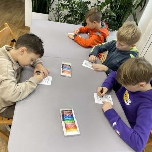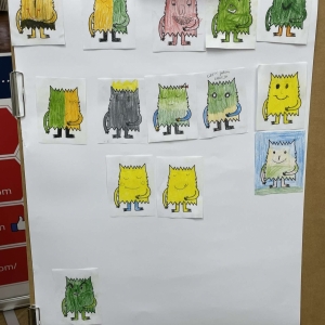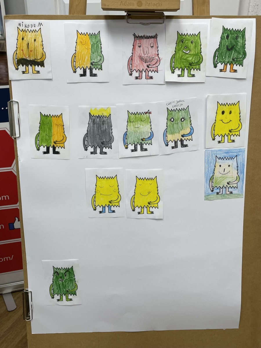Następnie uczniowie kolorowali własne „potworki”, barwami ukazując uczucia, które się w nich znajdowały.