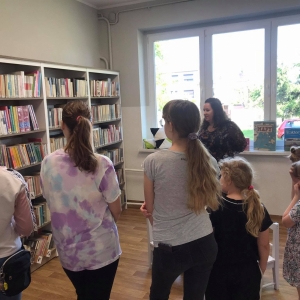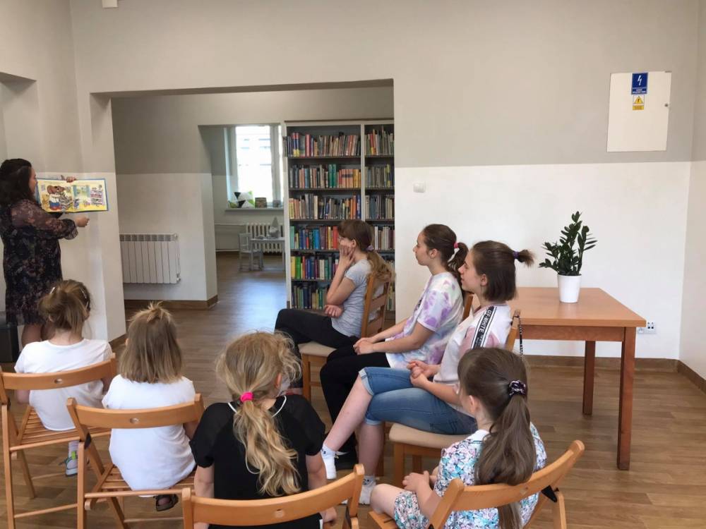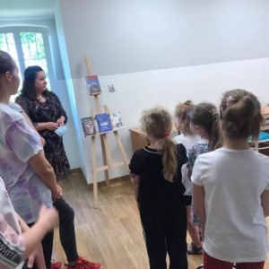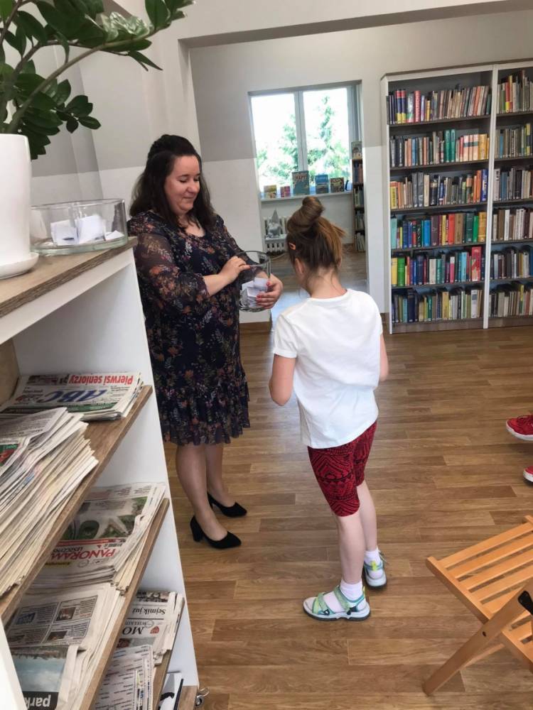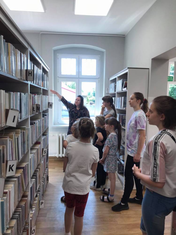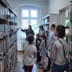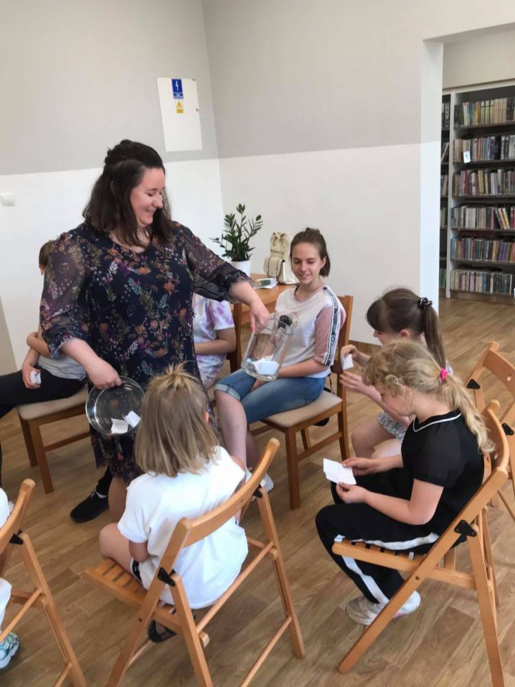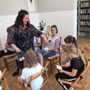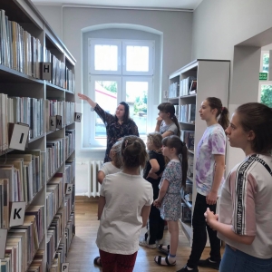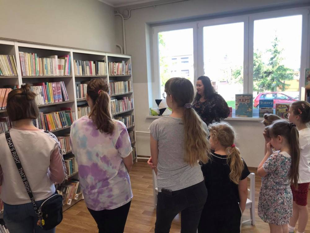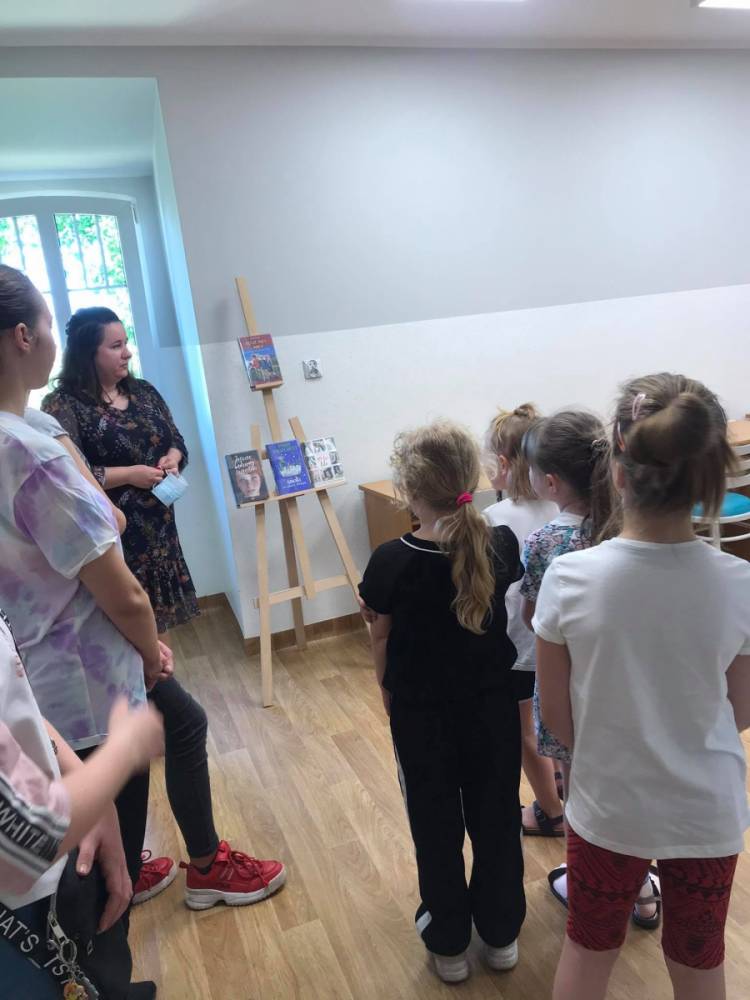 Czas pandemii spowodował, że wiele dziedzin naszego życia zatrzymało się, w tym także spotkania w bibliotece. Od 31 maja 2021 roku Biblioteka Publiczna ponownie otworzyła swoje drzwi na oścież dla użytkowników. Każdy może przyjść i swobodnie poruszać się po naszej placówce. W sobotę (5 czerwca) odwiedziła nas schola dziecięco –młodzieżowa działająca w Sanktuarium Matki Bożej przy Żłóbku w Kobylinie. Grupa dzieci zwiedziła każdy zakamarek nowej, kobylińskiej książnicy. Na gości czekały literackie kalambury, a także książka, która swoją treścią nawiązywała do zbliżającego się Dnia Ojca. Oczywiście, jak na wizytę w bibliotece przystało, goście mieli możliwość wypożyczenia książek. Korzystając z pięknego słonecznego dnia, schola odwiedziła także nasz ogród i zagrała w piłkę. Zapraszamy ponownie !