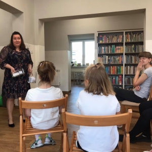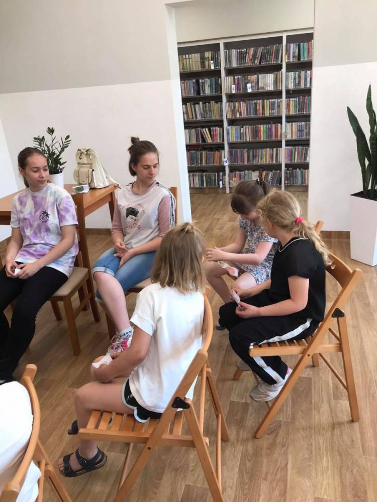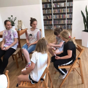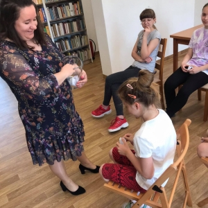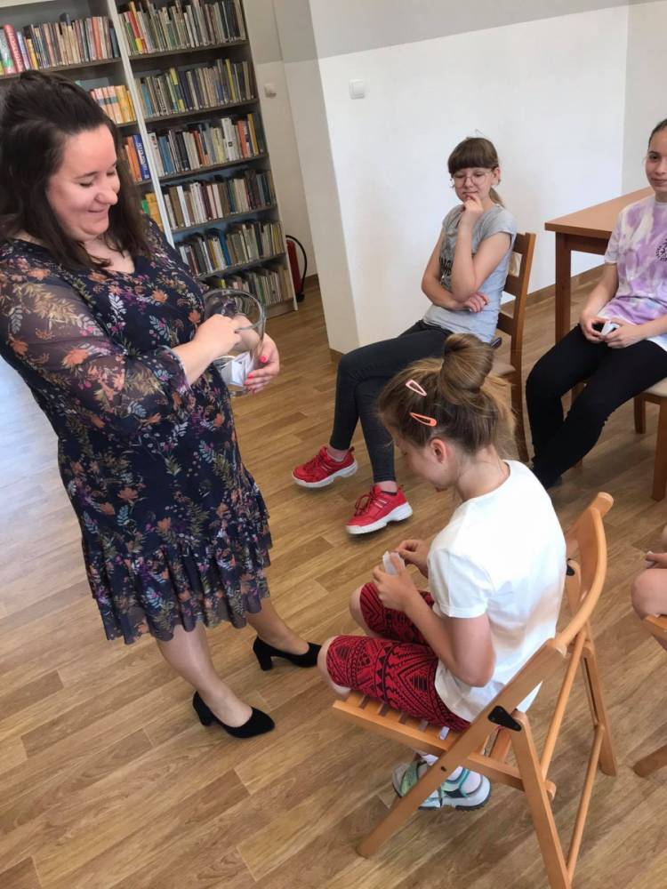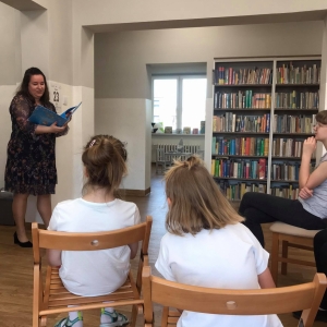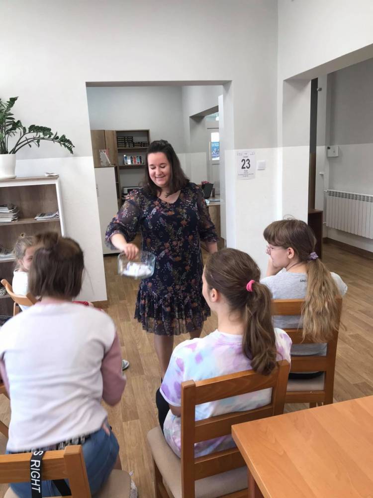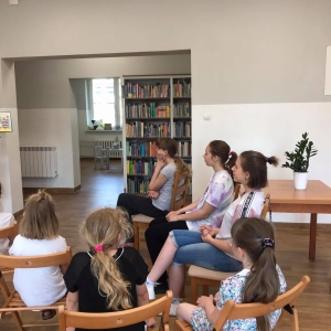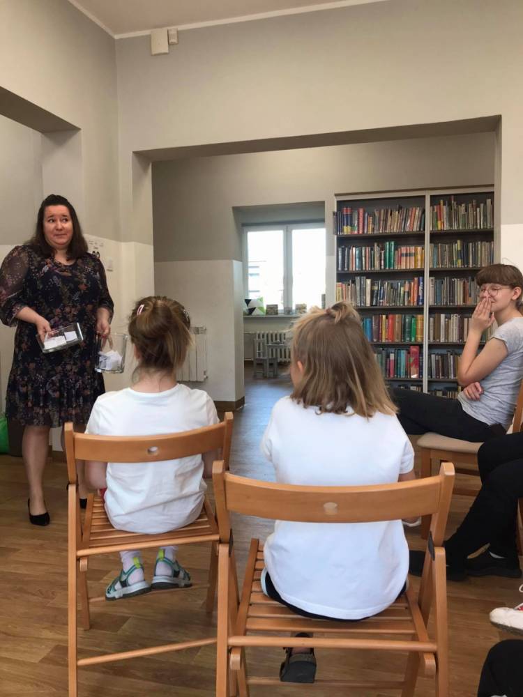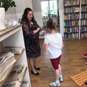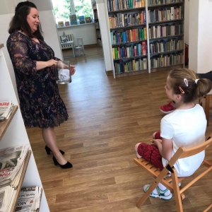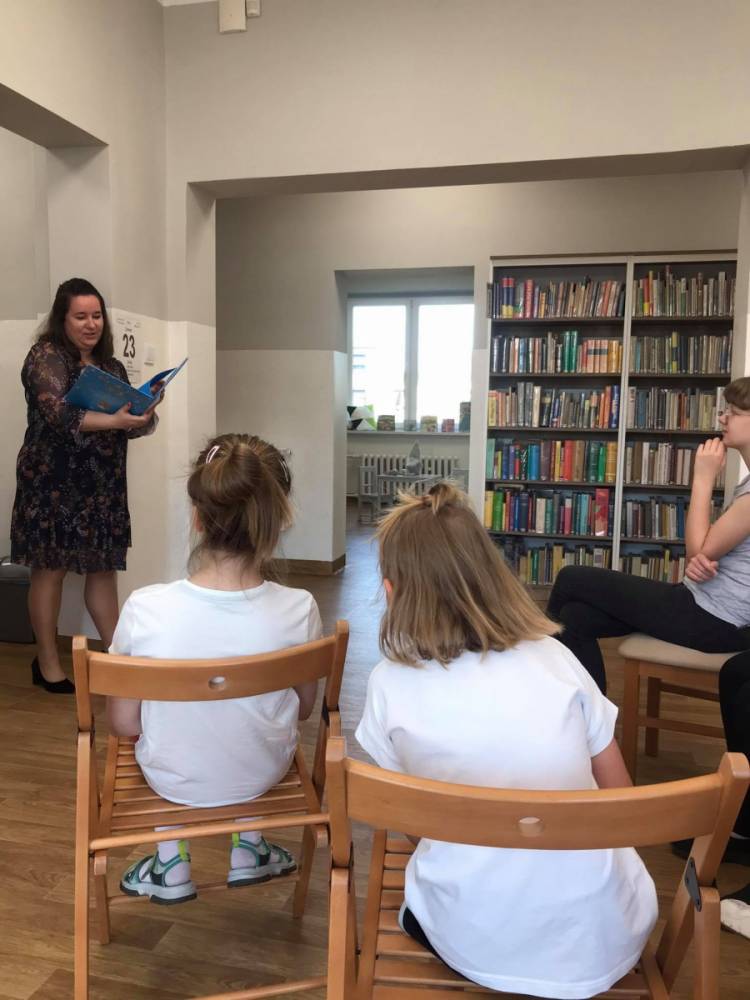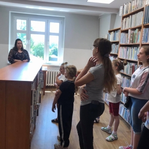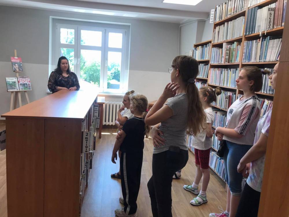 Czas pandemii spowodował, że wiele dziedzin naszego życia zatrzymało się, w tym także spotkania w bibliotece. Od 31 maja 2021 roku Biblioteka Publiczna ponownie otworzyła swoje drzwi na oścież dla użytkowników. Każdy może przyjść i swobodnie poruszać się po naszej placówce. W sobotę (5 czerwca) odwiedziła nas schola dziecięco –młodzieżowa działająca w Sanktuarium Matki Bożej przy Żłóbku w Kobylinie. Grupa dzieci zwiedziła każdy zakamarek nowej, kobylińskiej książnicy. Na gości czekały literackie kalambury, a także książka, która swoją treścią nawiązywała do zbliżającego się Dnia Ojca. Oczywiście, jak na wizytę w bibliotece przystało, goście mieli możliwość wypożyczenia książek. Korzystając z pięknego słonecznego dnia, schola odwiedziła także nasz ogród i zagrała w piłkę. Zapraszamy ponownie !