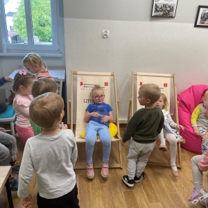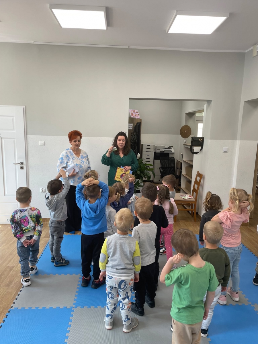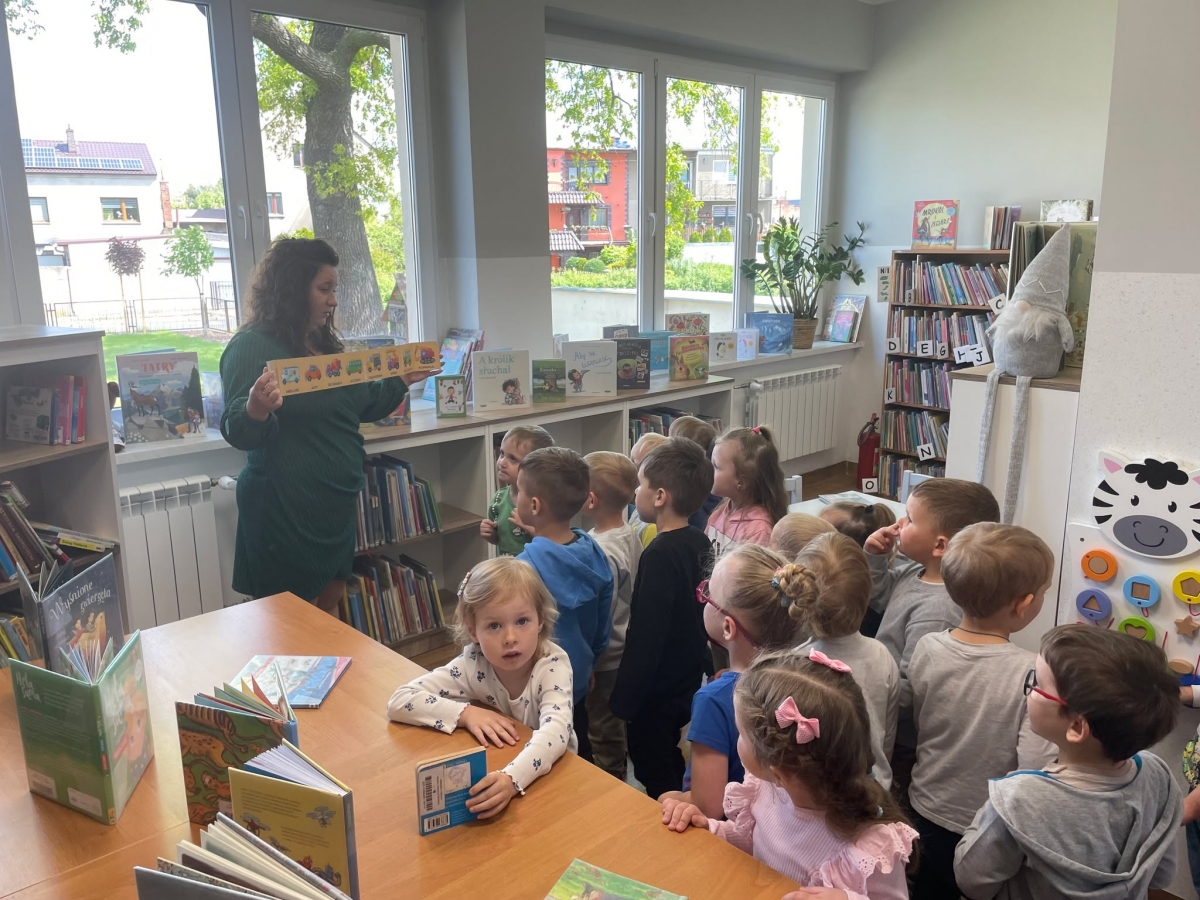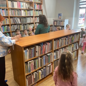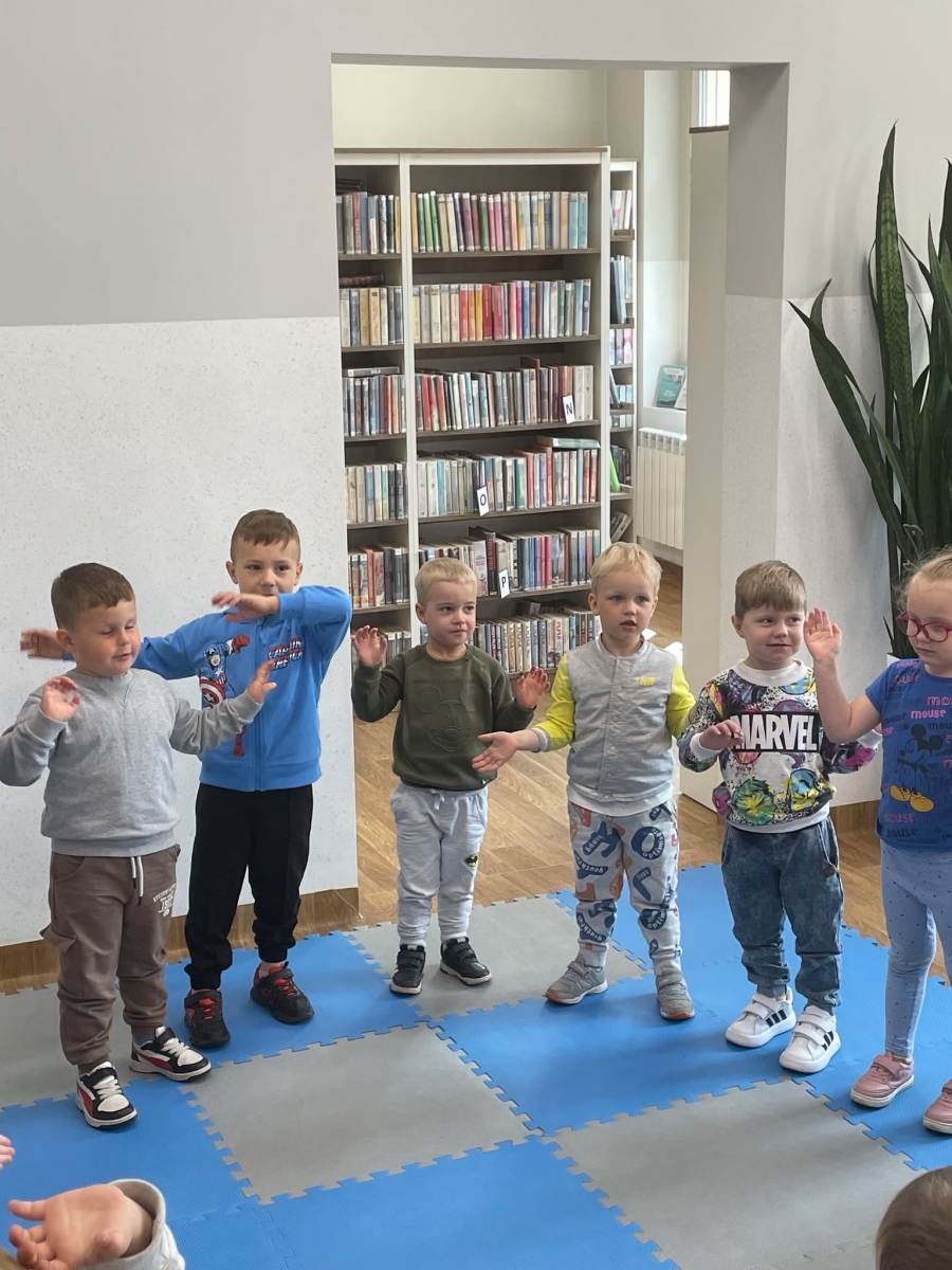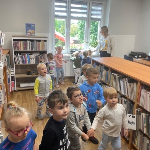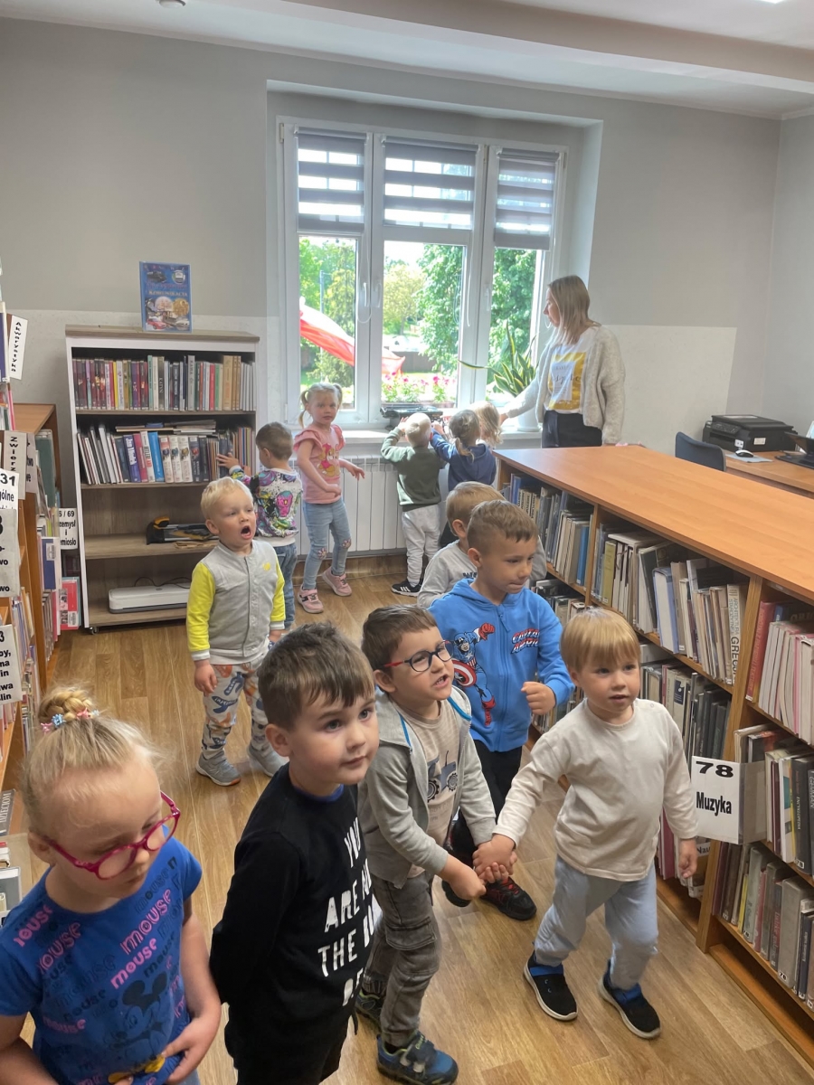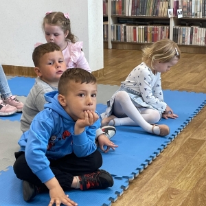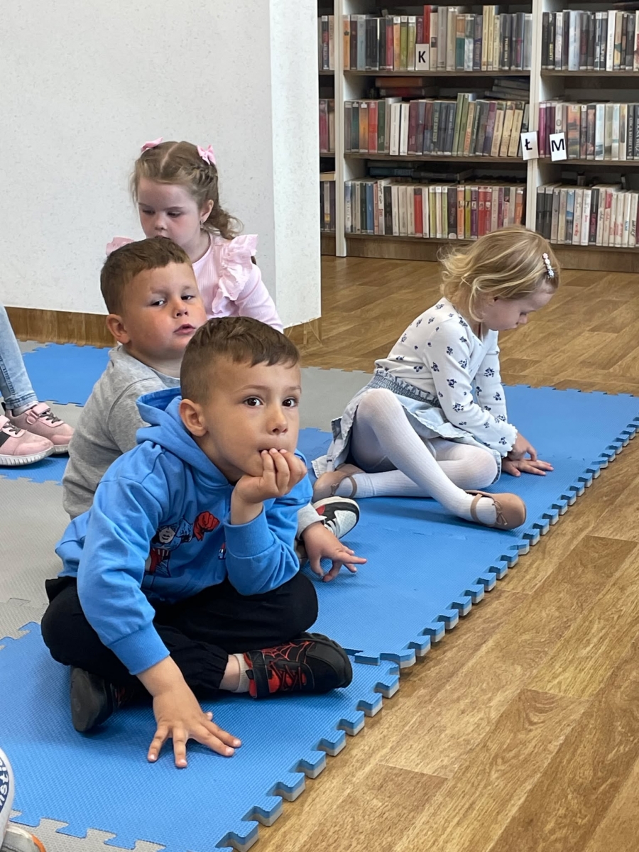 Była to pierwsza wizyta dzieci w naszej bibliotece. Rozmawialiśmy o książkach – o ich różnorodności pod względem formatu oraz tematu. Przedszkolacy wysłuchali książki „Tupcio Chrupcio. Nie chcę jeść!”. Oglądali również książki, z czego najbardziej spodobała im się „Pająk Patryk”.