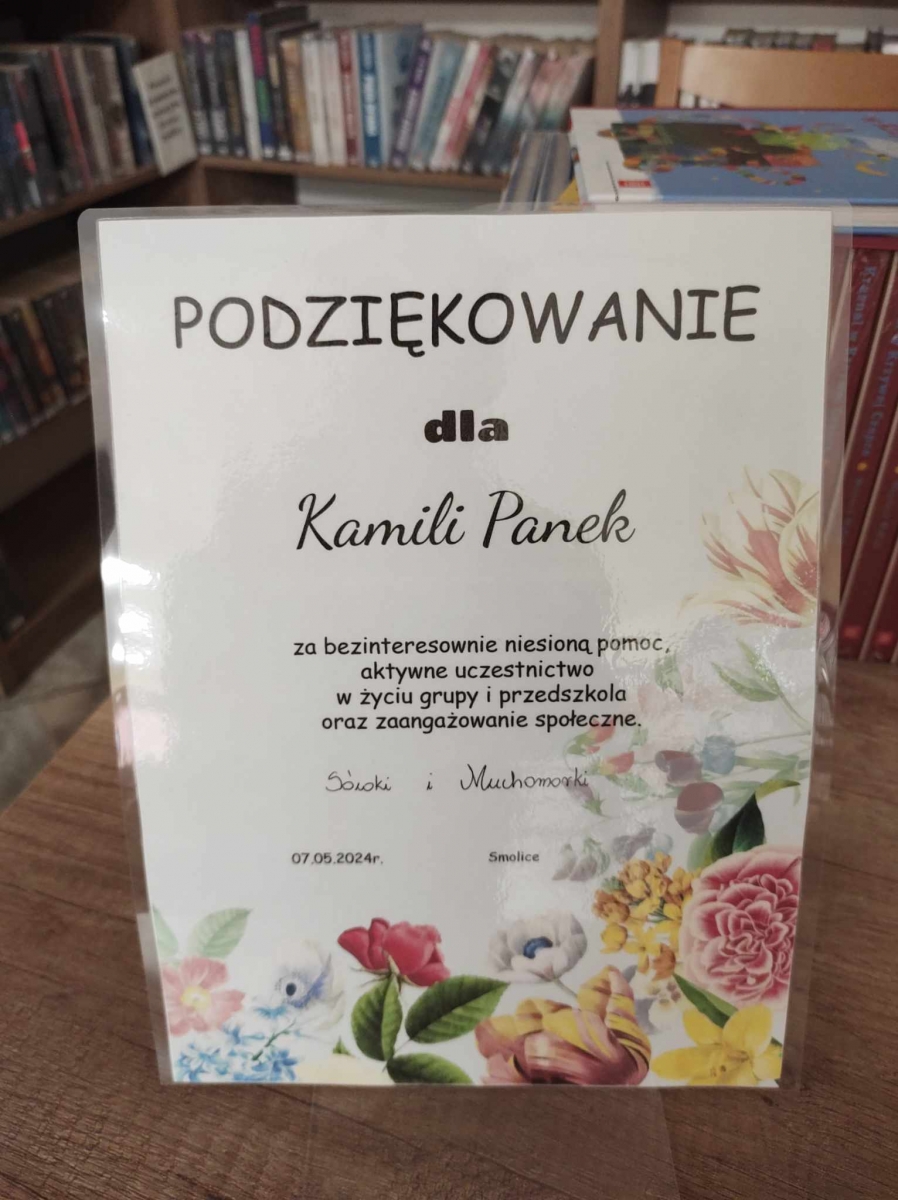 Na zakończenie wizyty każde dziecko otrzymało zaproszenie do odwiedzin w bibliotece wraz z rodzicami. Są one rozdawane w ramach ogólnopolskiej akcji ,,Mała Książka Wielki Człowiek”. Podczas wizyty w Bibliotece Publicznej każdy przedszkolak otrzyma zestaw upominkowy, którego częścią jest darmowy egzemplarz książki.