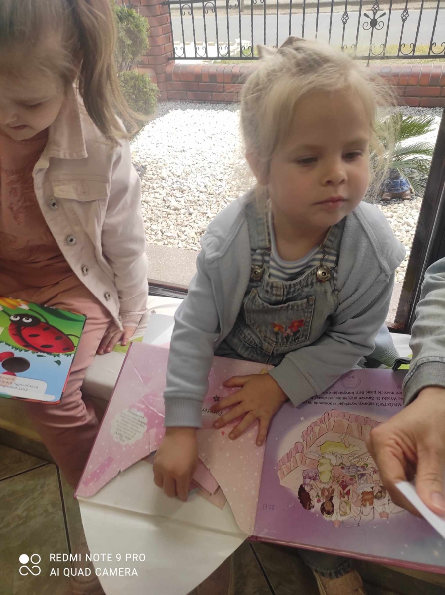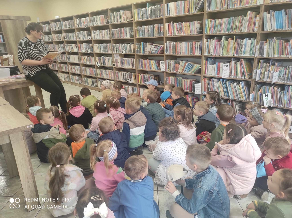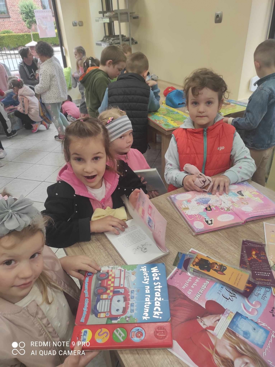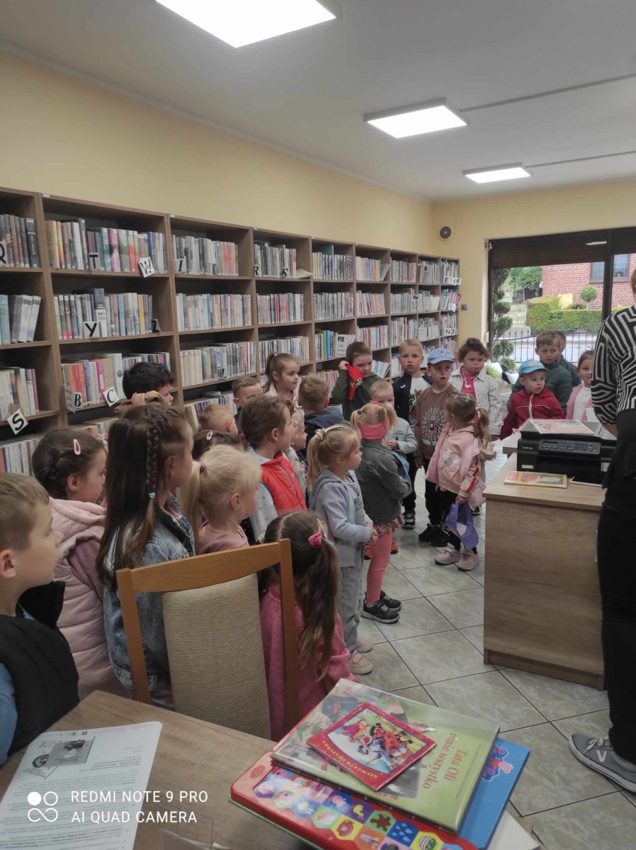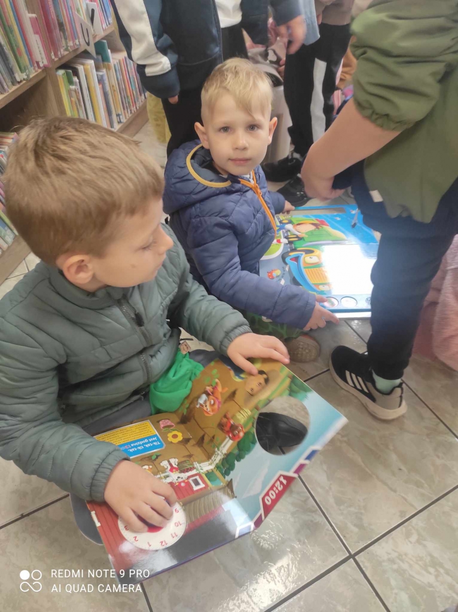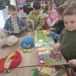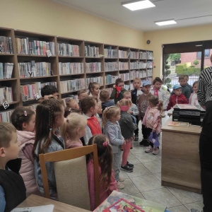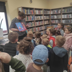 Goście zwiedzili bibliotekę, dowiedzieli się co to jest biblioteka, co się w niej znajduje i w jaki sposób można z niej korzystać. Po zwiedzeniu książnicy wysłuchali wiersza Jana Brzechwy „Kaczka Dziwaczka”. Poczuli się również jak młodzi czytelnicy oglądając i czytając książki przeznaczone dla nich.