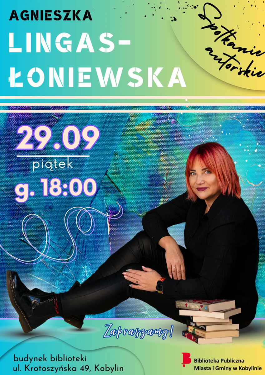 Gorąco zapraszamy na spotkanie autorskie, które odbędzie się 29 września o godz. 18:00 w budynku kobylińskiej biblioteki - ul. Krotoszyńska 49.
