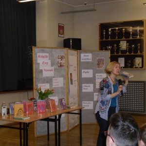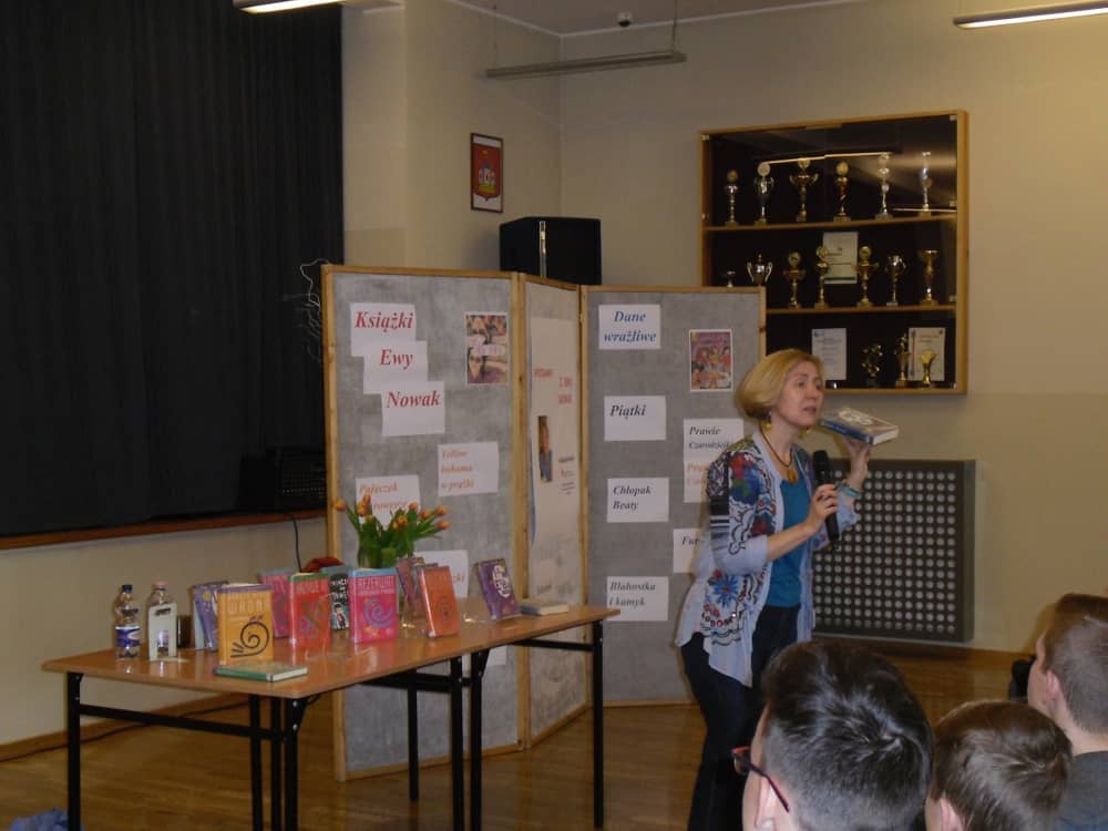 Ewa Nowak z ogromnym poczuciem humoru opowiadała o swoim dzieciństwie i kolejach losu, które wpłynęły na rozwój jej przygody z pisaniem. Zachęcała młodzież do twórczego działania i czytania książek. Dzięki czemu z pewnością rozwiną swój iloraz inteligencji oraz odnajdą pomysł na swoje życie. Wszyscy były pod wielkim wrażeniem niezwykłego uroku osobistego pisarki.