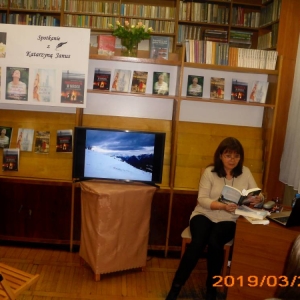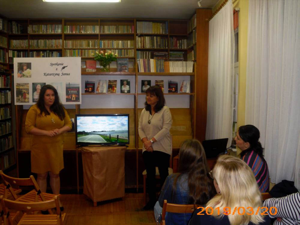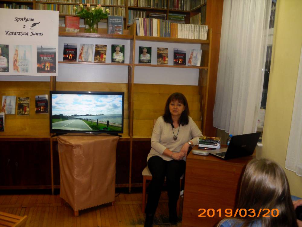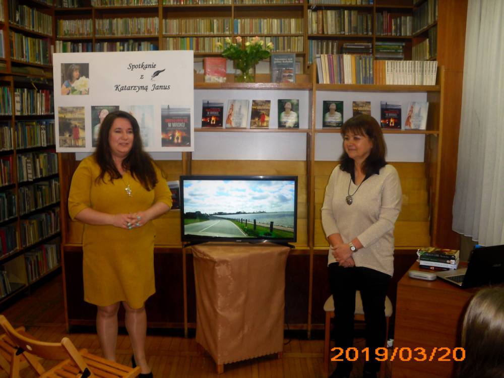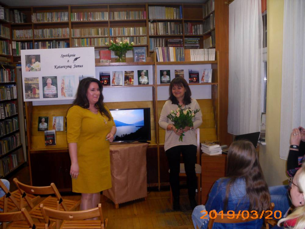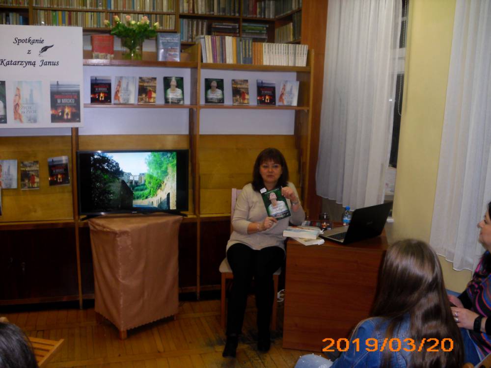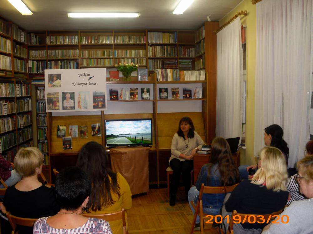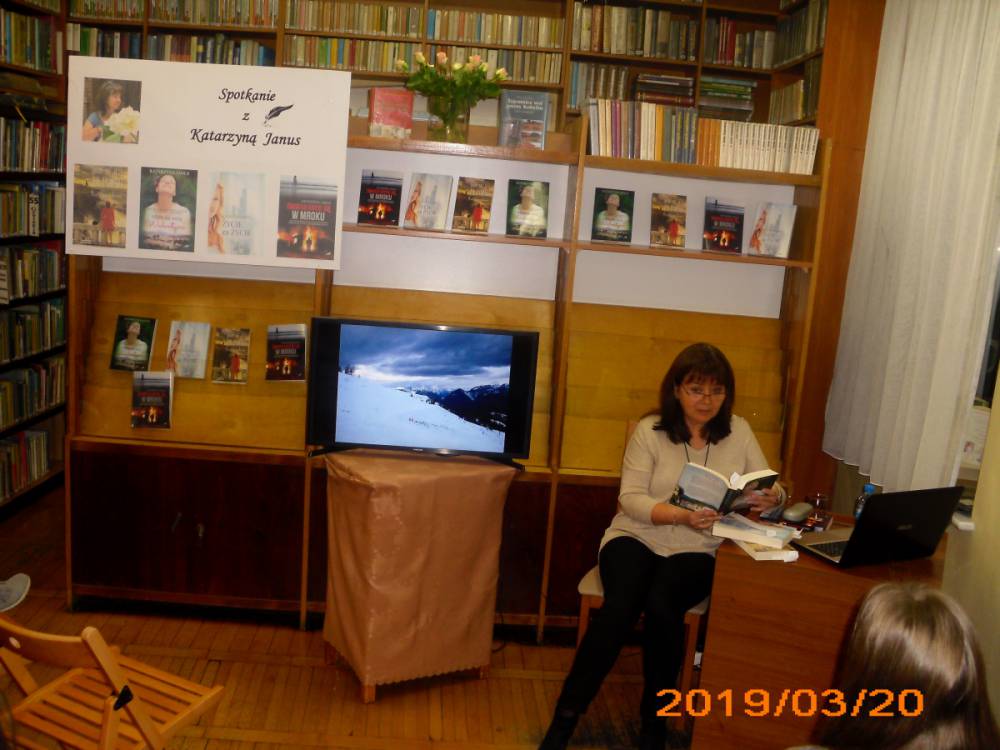 Pisarka jest mieszkanką Leszna, gdzie od wielu lat pracuje w zawodzie lekarza. Do tej pory wydała cztery powieści z gatunku literatury kobiecej. Tytuły książek to: ,,Nigdy nie jest za późno”, ,,Życie za życie”, ,,Mam na imię Walentyna” , ,,Światło kryje się w mroku”. Piąta powieść ukaże się już w maju, nosi tytuł ,,Piękni ludzie”. Autorka wszystkie książki wydała pod pseudonimem Katarzyna Janus. Pisać zaczęła przed kilkoma laty, zainspirowana przez przyjaciółkę. Bardzo lubi podróżować i w każdej powieści przemyca wrażenia ze swoich wojaży. Kobylińscy czytelnicy podczas spotkania mogli obejrzeć wiele zdjęć z wyjazdów pisarki. We wszystkich powieściach Katarzyny Janus przewijają się również wątki medyczne. Cóż… wieloletnia praca w tym zawodzie pozostawia swoje piętno.