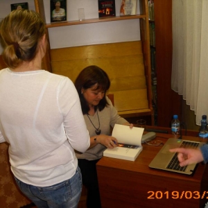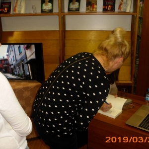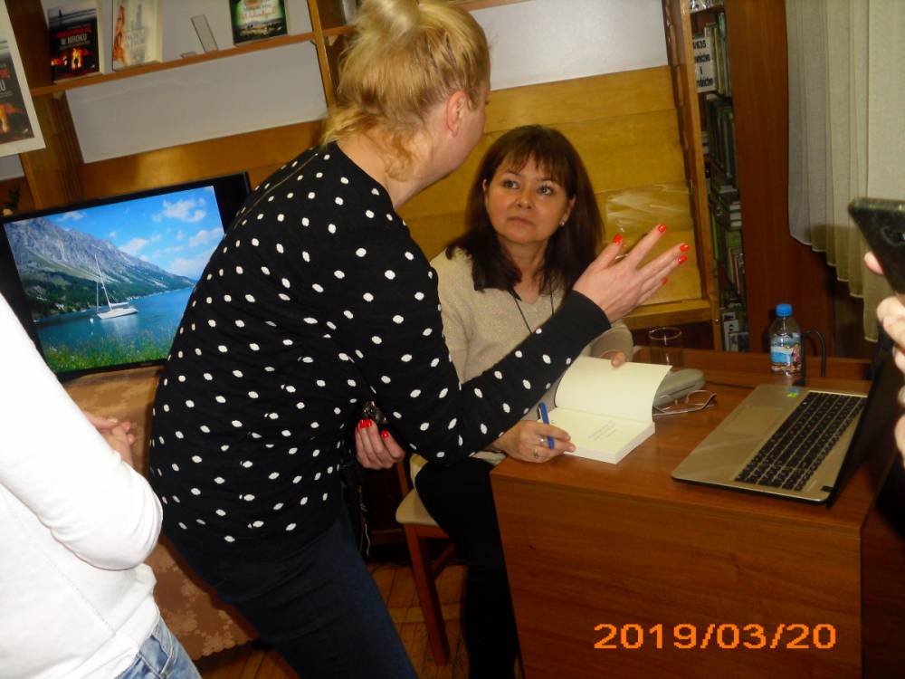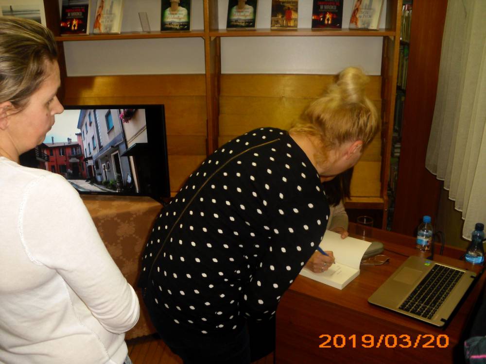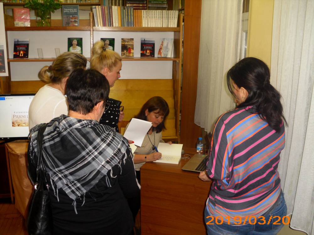 Na zakończenie spotkania każdy kto przybył do biblioteki mógł indywidualnie porozmawiać z pisarką oraz zdobyć autograf twórczyni literatury kobiecej.