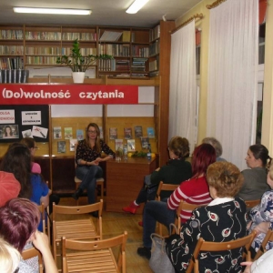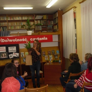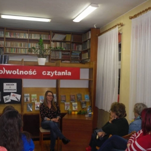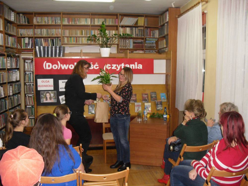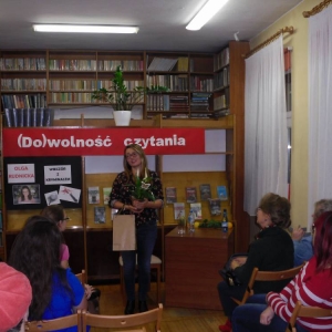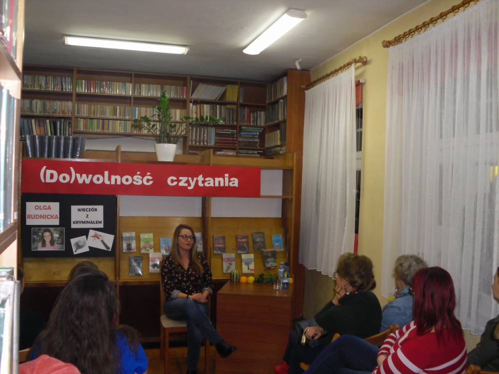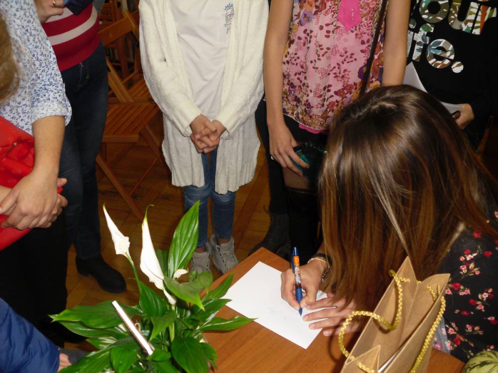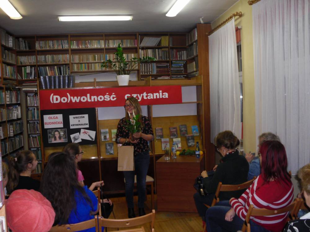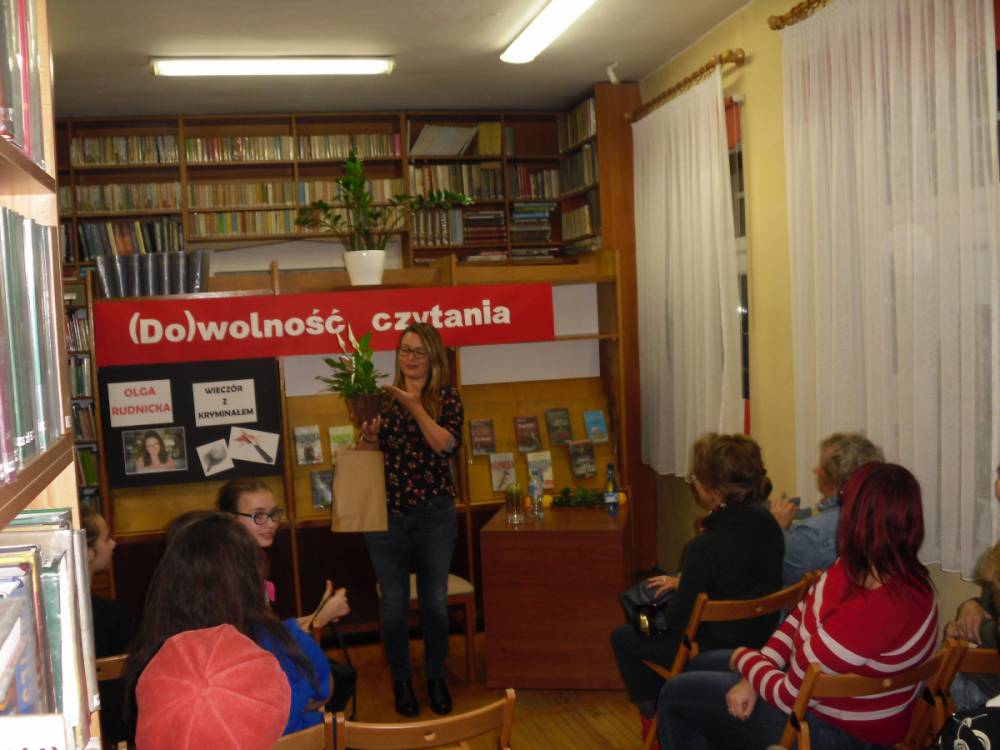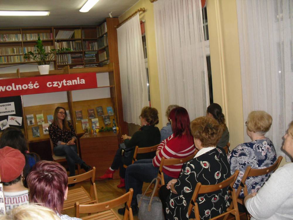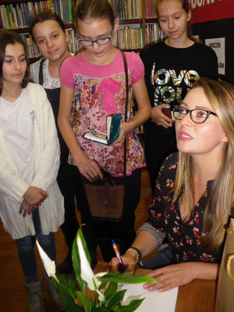 Na zakończenie wieczoru pisarka rozdawała autografy i pozowała do zdjęć z czytelnikami. Wszystkich zainteresowanych zapraszamy do biblioteki w celu zapoznania się z dorobkiem literackim młodej autorki kryminałów.