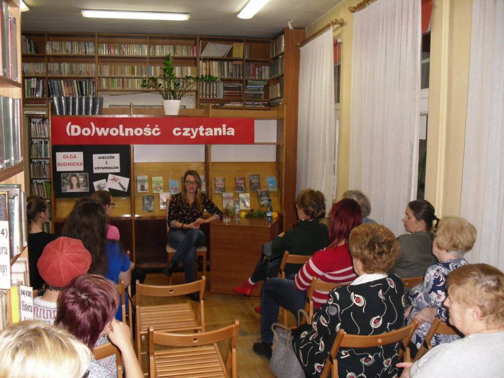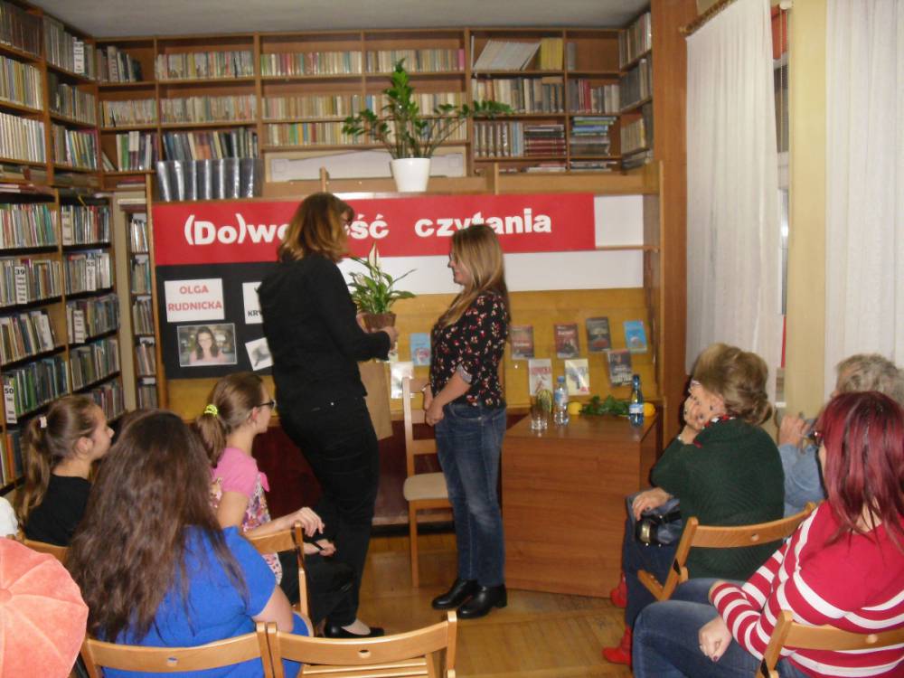 Podczas piątkowego spotkania czytelnicy kobylińskiej książnicy nie zawiedli, przybyli tłumnie. Mieli mnóstwo pytań do autorki. Olga Rudnicka z pasją i humorem opisała swoje początki z pisaniem, pierwsze kontakty z wydawnictwem oraz medialną otoczką, która temu towarzyszyła.
