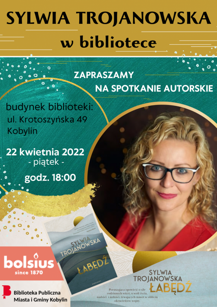 Zapraszamy 22 kwietnia (piątek) o godz. 18:00 do naszej kobylińskiej biblioteki na niezwykły wieczór autorski z pisarką powieści obyczajowych i sztuk teatralnych. :-)