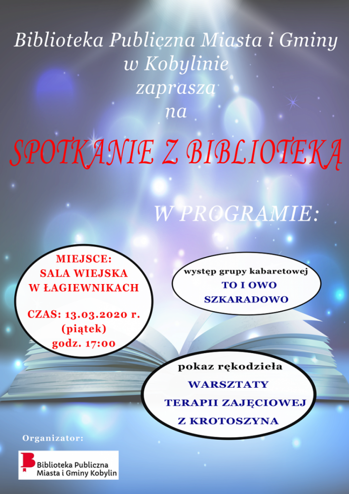 Biblioteka Publiczna Miasta i Gminy w Kobylinie zaprasza wszystkich zainteresowanych na SPOTKANIE Z BIBLIOTEKĄ.