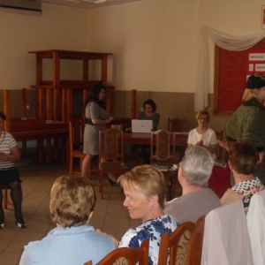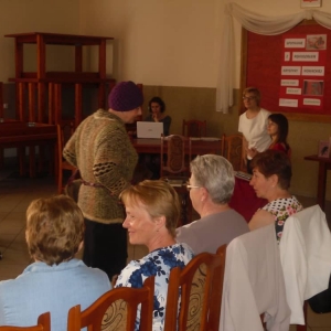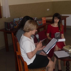 Poszczególne prezentacje przeplatane były promocją prozy literackiej czytanej przez kobylińskie bibliotekarki i poezji w wykonaniu naszej wiernej czytelniczki pani Justyny Küffner. Podczas spotkania zaprezentowane zostały także książki z zakresu rękodzielnictwa oraz tematów przewodnich pokazów. Pozycje te są dostępne w Bibliotece Publicznej Miasta i Gminy Kobylin i Filiach Bibliotecznych w Łagiewnikach i Smolicach.
