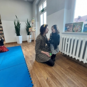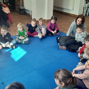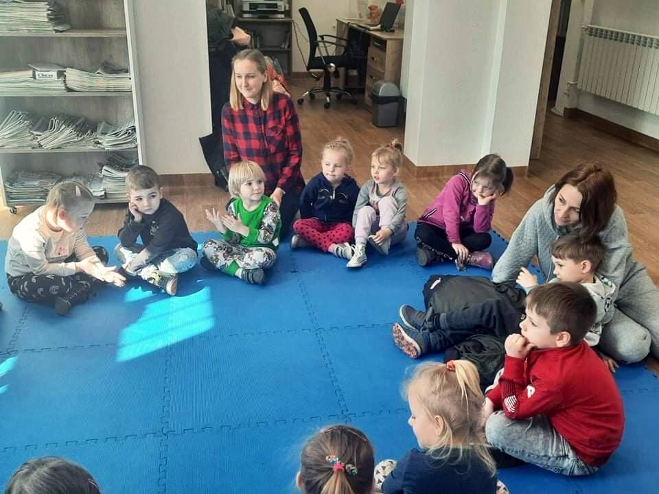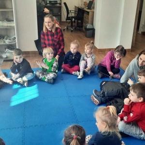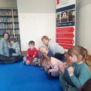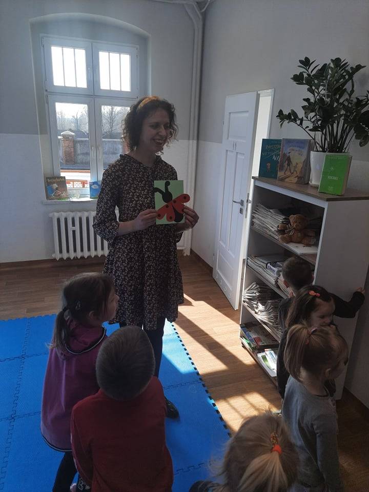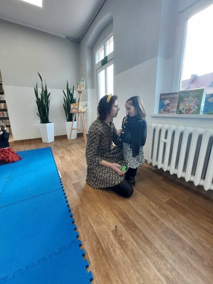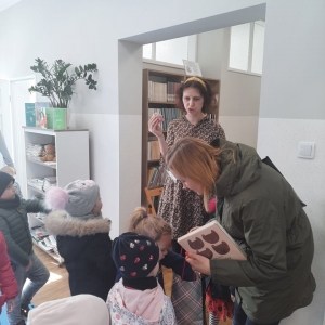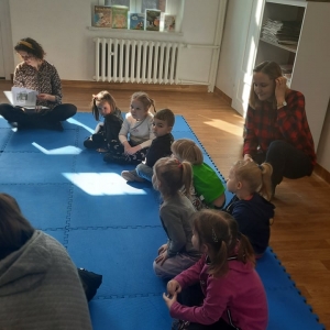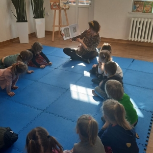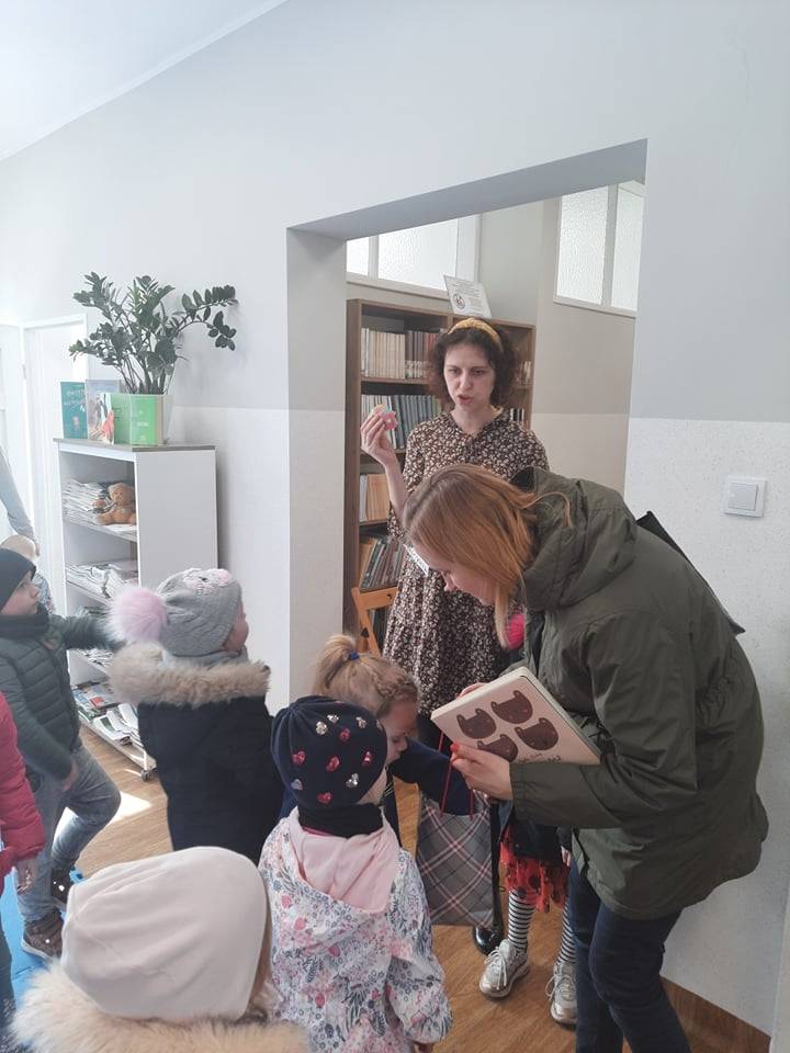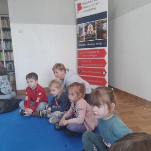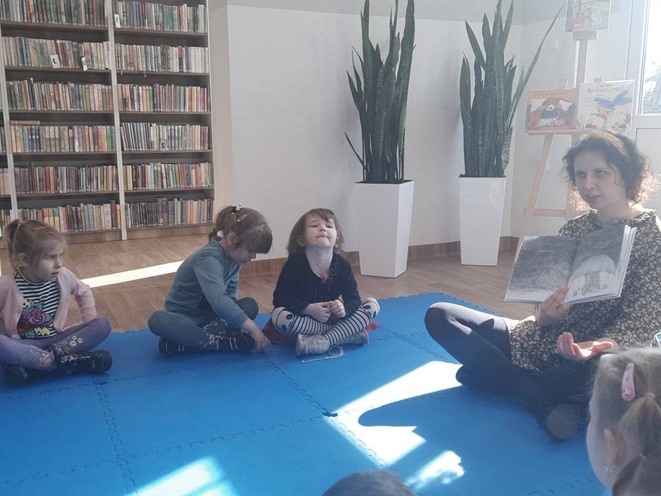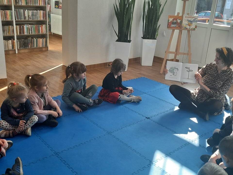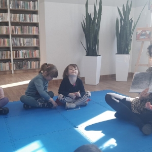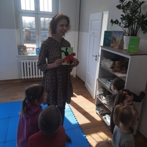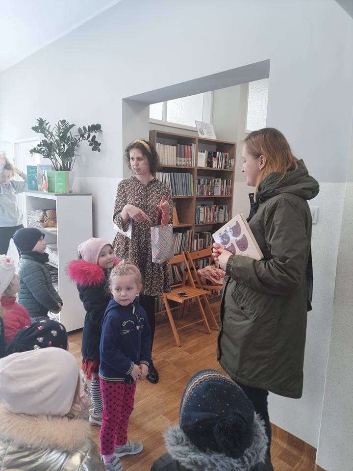 We wtorkowy poranek, 15 marca naszą bibliotekę odwiedziła grupa Smerfów z kobylińskiego przedszkola wraz z wychowawcą, panią Anetą Hądzelek oraz panią Moniką Pilujską.