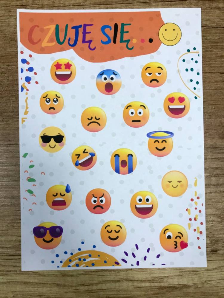 Na zakończenie tego emocjonującego spotkania przedszkolaki otrzymały słodkie cukierki, naklejki oraz… kartę z emotikonami przedstawiającymi różnorodne uczucia. Mamy nadzieję, że pomogą one najmłodszym w wyrażaniu i nazywaniu swoich emocji. :-)