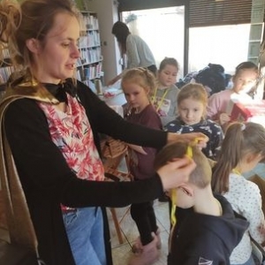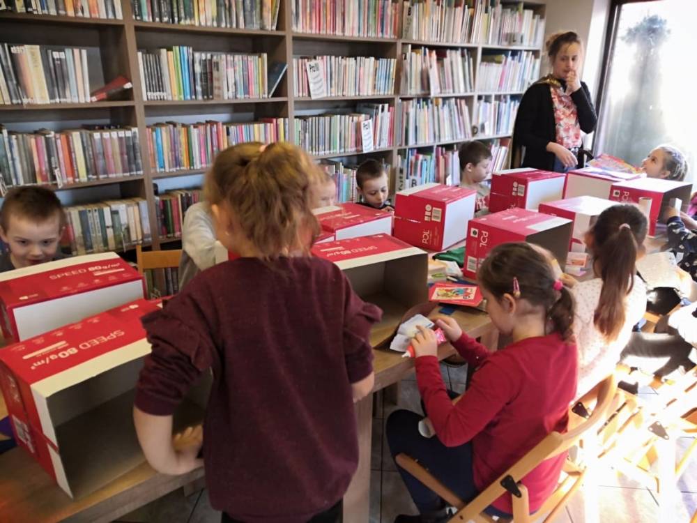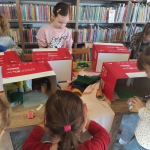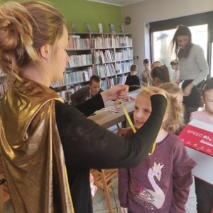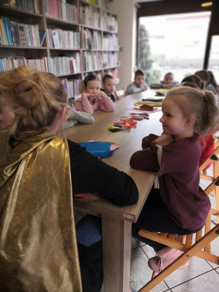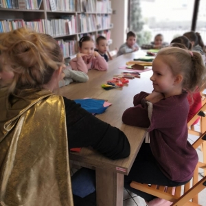 W środę 12 stycznia 2022 r. uczniowie klasy pierwszej Szkoły Podstawowej w Smolicach z wychowawczynią Panią Marietą Kulus, odwiedzili Filię Biblioteczną w Smolicach. Dzieci uczestniczyły w zajęciach prowadzonych przez Panią Dorotę Jagodzińską – animatorkę. Tematem warsztatów był superbohater. Wstępem do zabawy było wspólne czytanie książki „Nowe przygody skarpetek (jeszcze bardziej niesamowite)” Justyny Bednarek. Uczestnicy spotkania opowiadali o swoich superbohaterach. Mówili także o ich niezwykłych zdolnościach. Następnie każde dziecko tworzyło kartotekę superbohatera, w której prezentowało m.in. mocne i słabe strony postaci. Kolejnym punktem zajęć było tworzenie pokoi dla superbohaterów, co w końcowym etapie pozwoliło na zbudowanie całej szkoły herosów. Na zakończenie spotkania prowadząca nagrodziła uczestników „Odznakami czarnej skarpetki z anilany za wspólne stworzenie szkoły superbohaterów”.